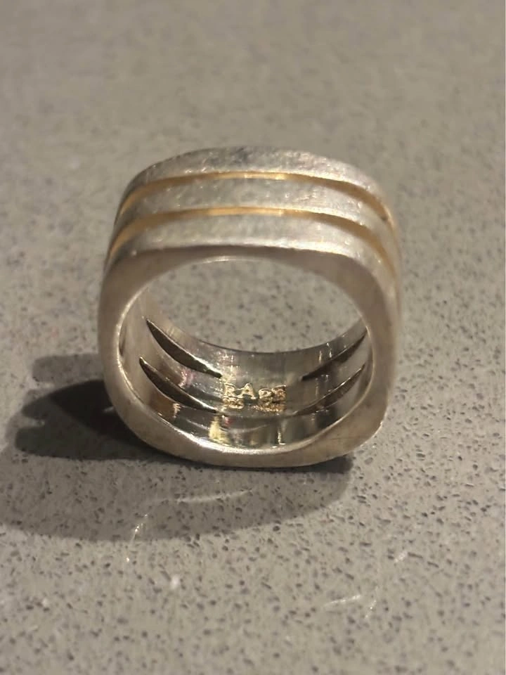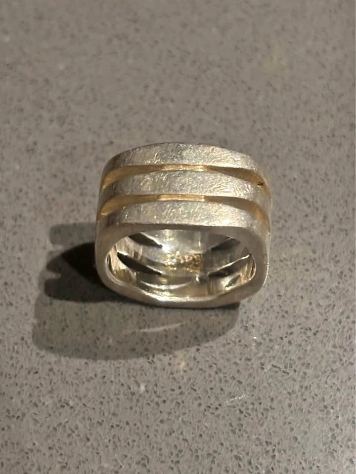 RAGE 925 Sterling Silver Wide Band Ring Gold Stripes Inlay 16g S