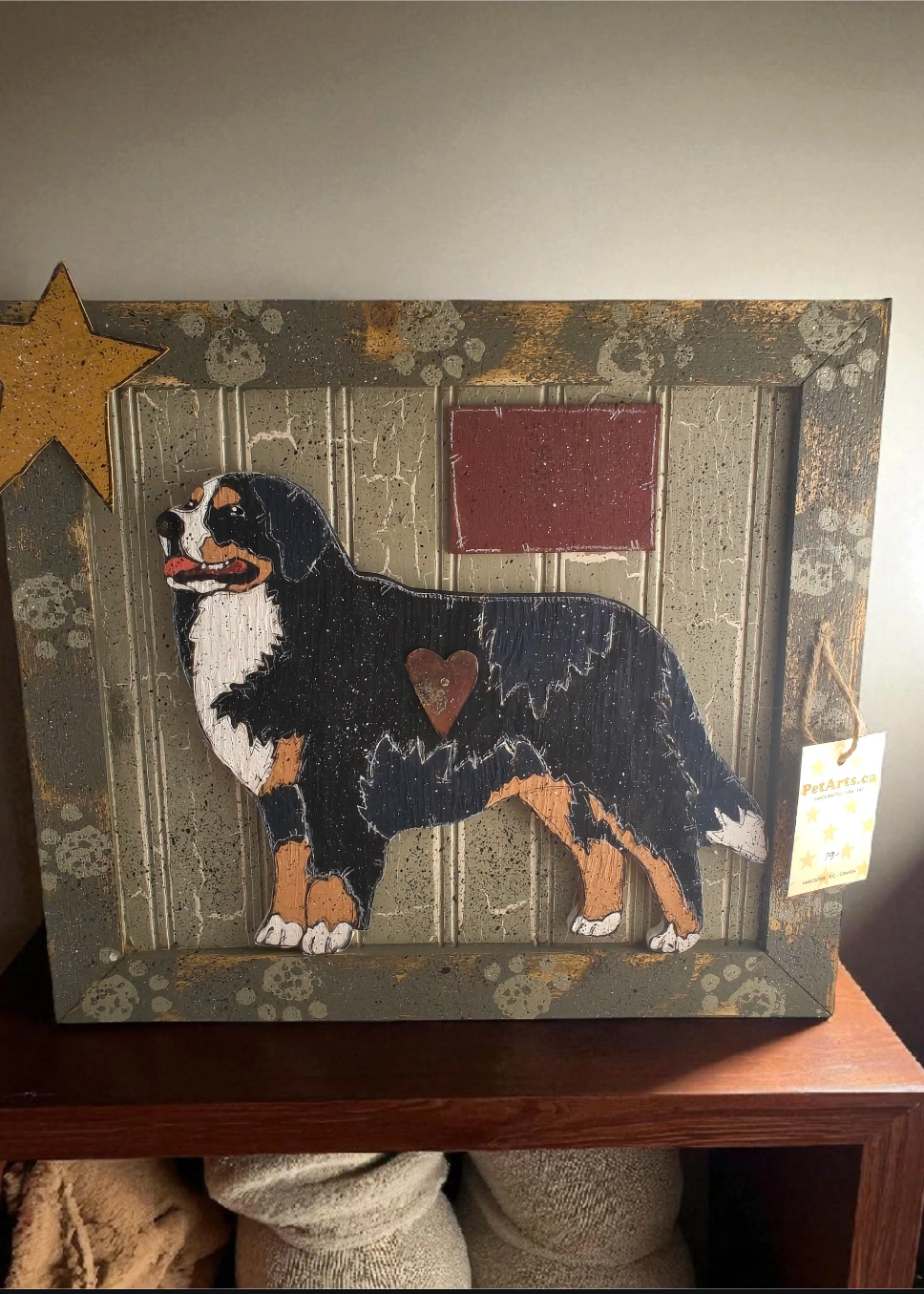 Cute wooden dog wall art with room for a name or quote! It's in great condition and ready to find a new home Approximately 17" x 15"