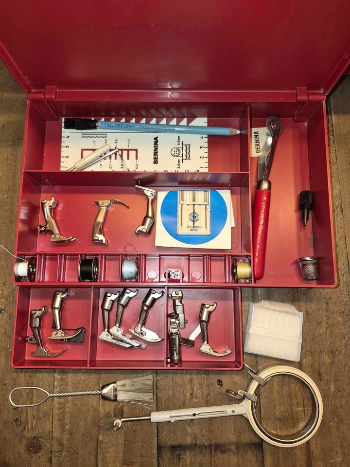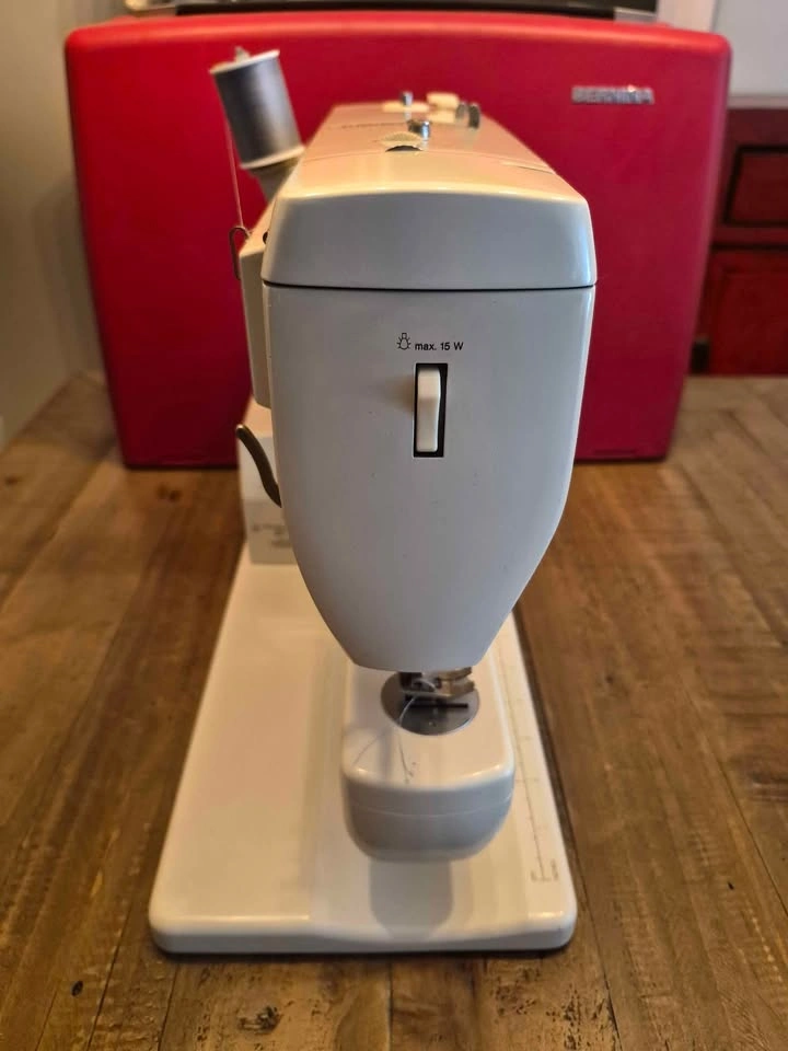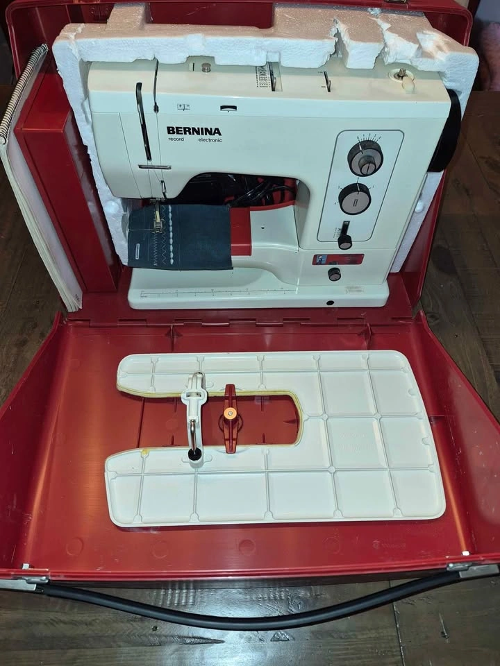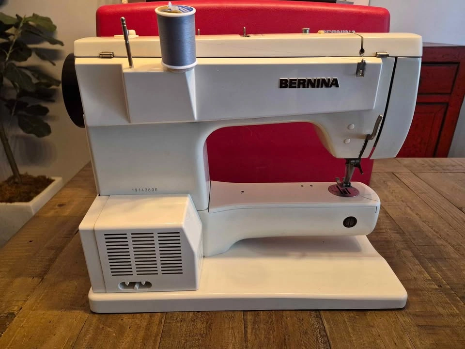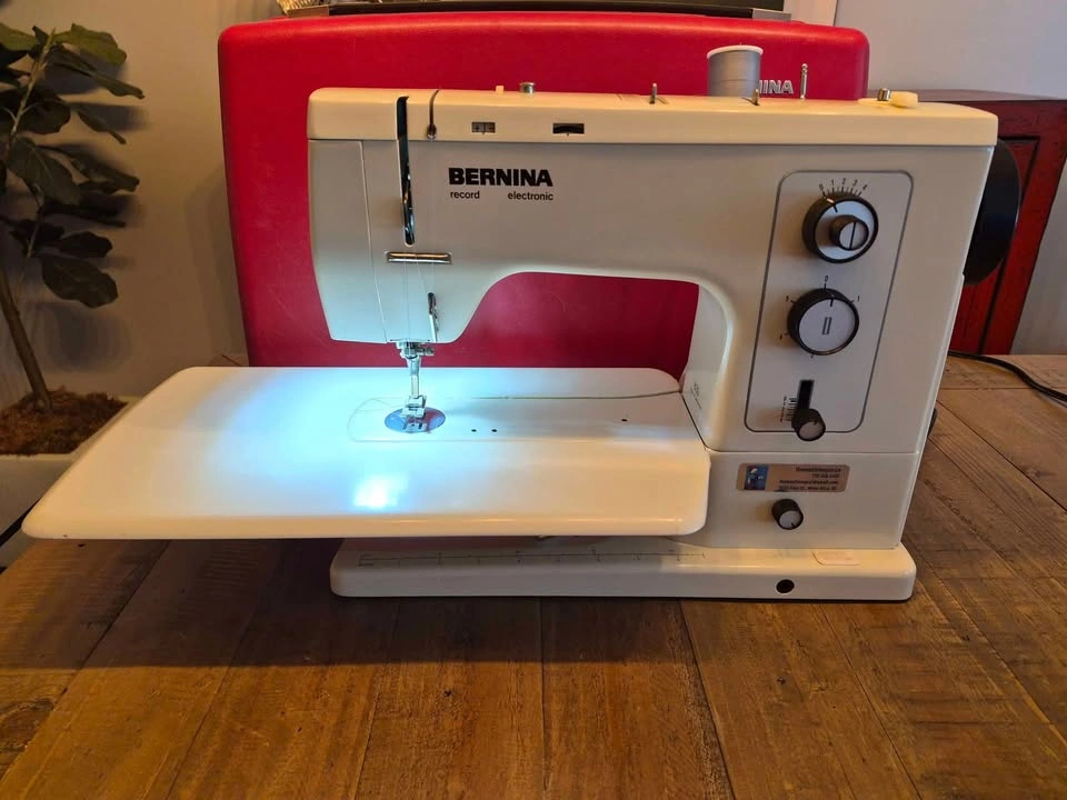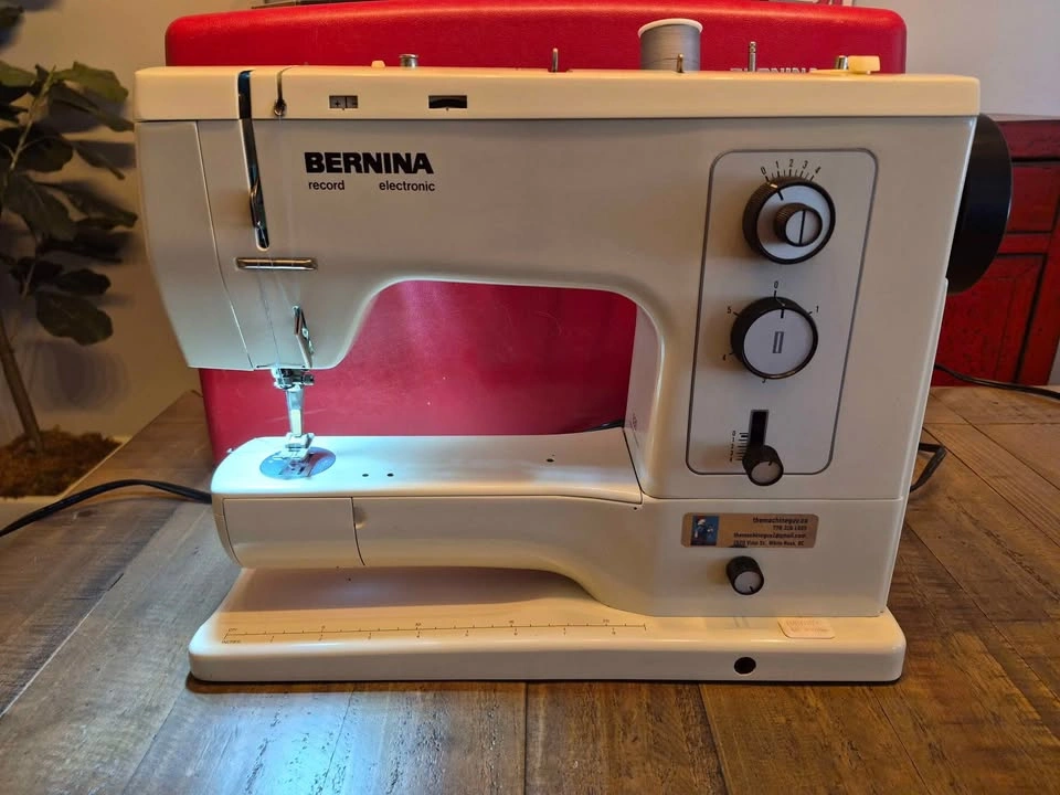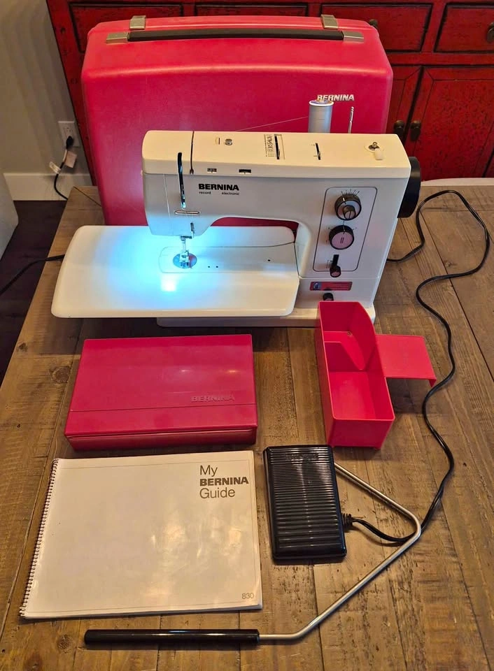 0This vintage sewing machine is in very nice condition and ready to go with 20 different stitches! If you're looking at this machine, you know it's the most desirable of the vintage Bernina 800 series. The quintessential work horse! Includes: Red Carrying Case, 1/2 Packing Styrofoam, Removable Work Table, Foot Pedal / Power Cord, Foot Pedal Holder, Accessories Case, Knee Bar, Eleven (11) Presser Feet, One (1) Presser Foot Adapter, Five (5) Bobbins, Original User Manual and LOTS of other misc. accessories. Refurbished by themachineguy.ca including: cleaned, oiled & adjusted, new electronic suppressor circuits, new needle, new motor brushes, new bobbin case, new bobbin winder assembly, new foot pedal / power cord, and new LED bulb. This is the nicest and most complete 830 in my collection and is priced accordingly. Backed by a 30 day warranty. Which covers materials and craftsmanship. $800 FIRM