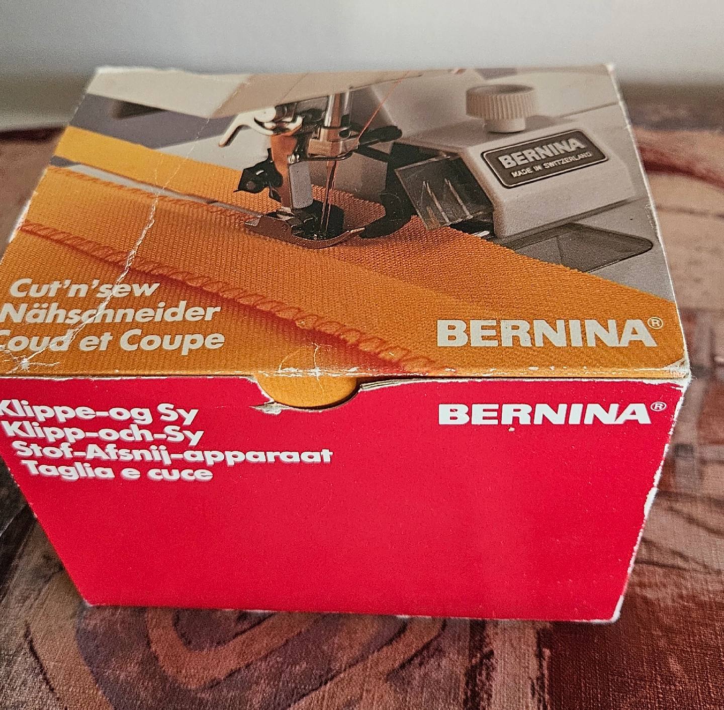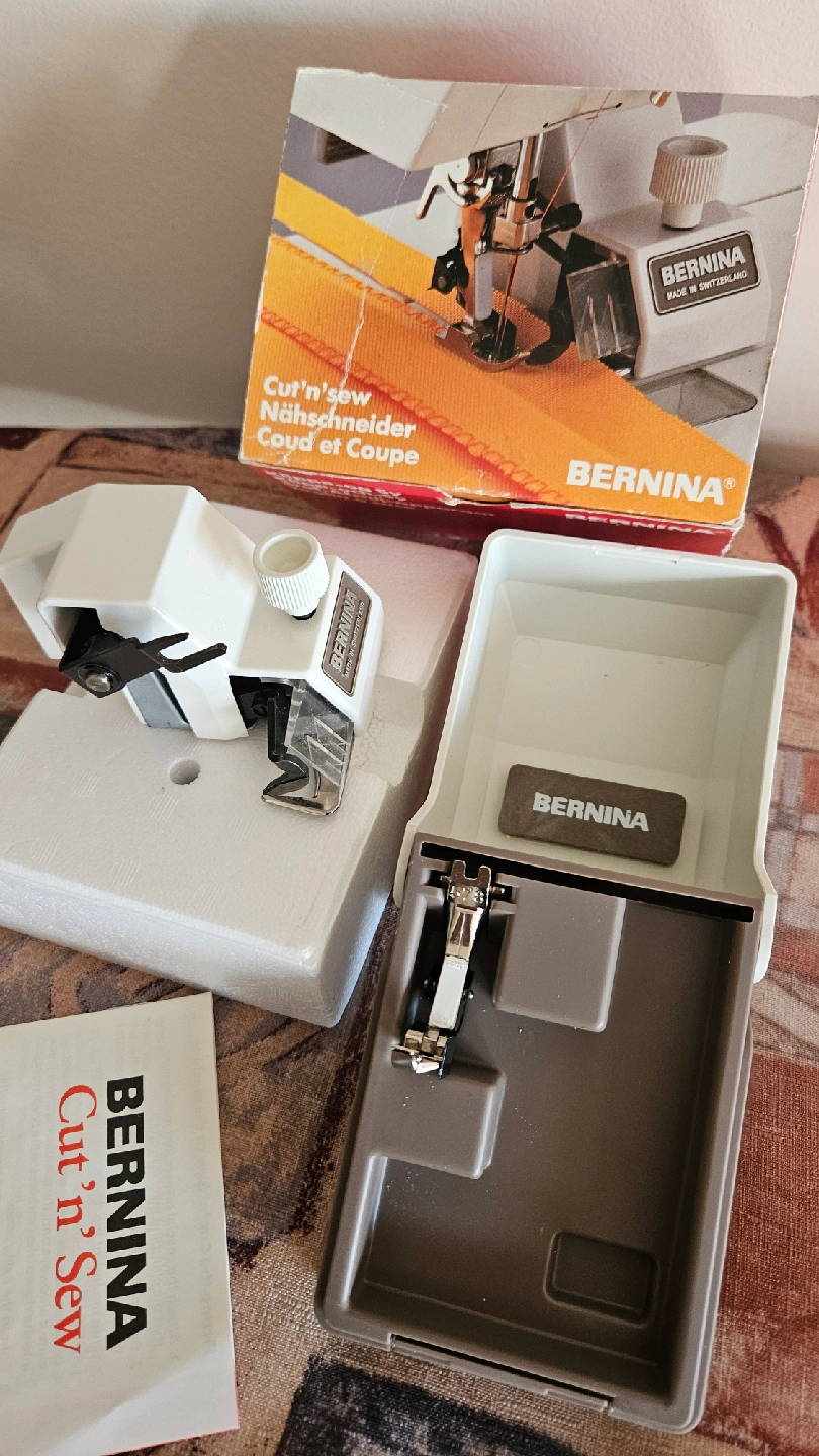 82Bernina Cut'n'Sew attachment for sewing machines! This handy tool helps you cut and sew fabric edges in one step. Comes with the original box and instructions for use. Perfect for adding a professional finish to your sewing projects
