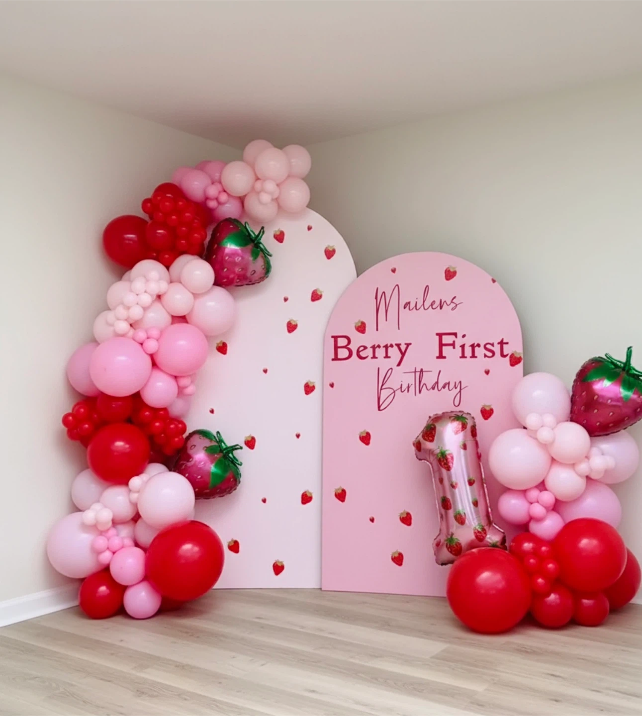 10๐โจ Our little berry turned ONE! โจ๐ We created a sweet โBerry First Birthdayโ setup filled with pink, red, and white balloons, berry accents, and a touch of farmhouse charm. The balloon garland, backdrop, and themed details made the celebration as fresh and sweet as the little one herself. A perfect blend of fun, fruity, and fabulous for a milestone that deserved nothing less than berry special! ๐๐ The whole setup is only for $320 #BerryFirstBirthday ๐ #BerrySweet #BerrySpecial #BerryCute #FirstBirthday #BalloonGarland #BirthdayBackdrop #BalloonDecor #EventStyling #PartyInspo #BalloonSetup #BirthdayVibes #BalloonDecorations #BirthdayPartyDecor #PartyStylist #BalloonArt #EventDecor