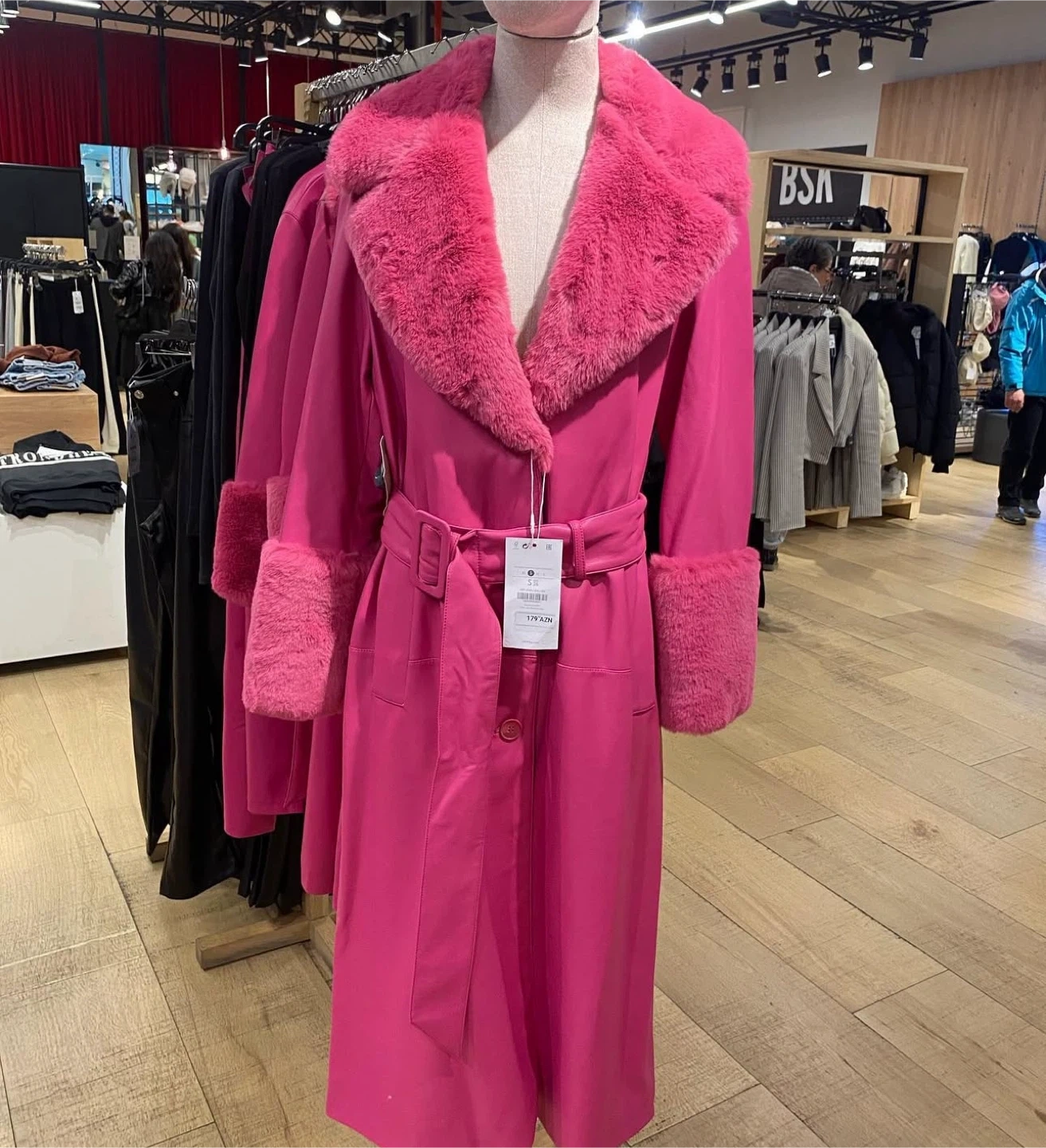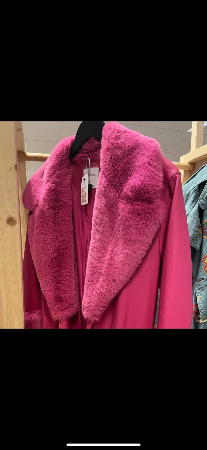 Check out this stylish pink coat from Bershka! It features a faux fur trim, adding a touch of glam to your outfit. This coat is perfect for adding a pop of colour to your wardrobe!