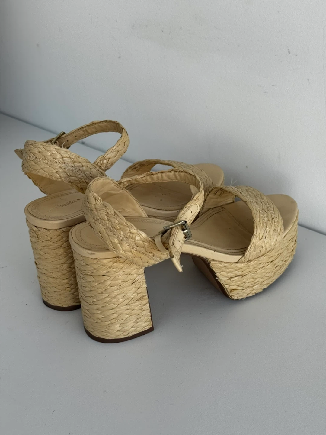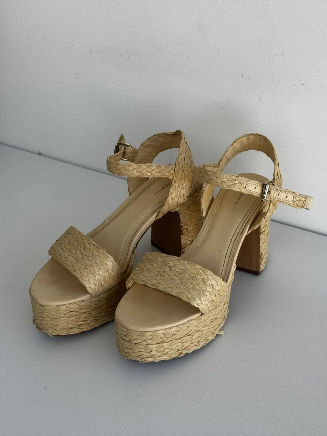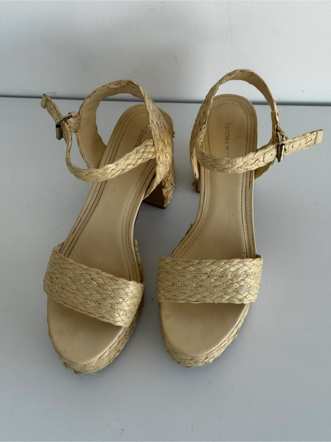 Selling a pair of Bershka platform sandals. They are a European size 40. The sandals have a woven design and are in good condition. Perfect for adding a bit of height and style to your summer outfits!