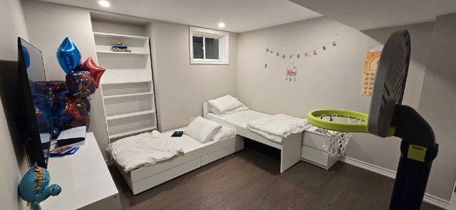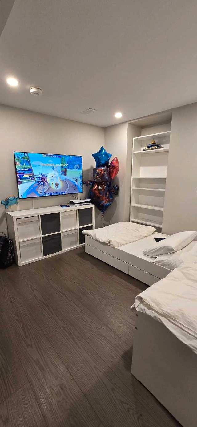 2 bed room apartment besmant separate entrance with one parking spot Address cottonfield circle intersection Kenedy & Mayfield very quiet area 500m from the school 500m from bus stop separate laundry dishwasher super clean apartment no pet no S m o ke looking for nice & Q uiet Family available from first of Nov for more info call at 647 850 6307
