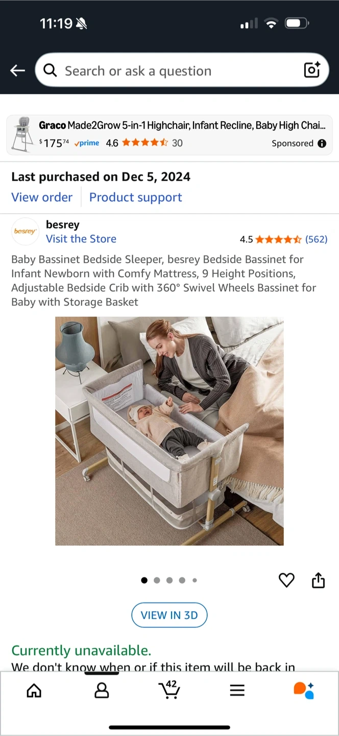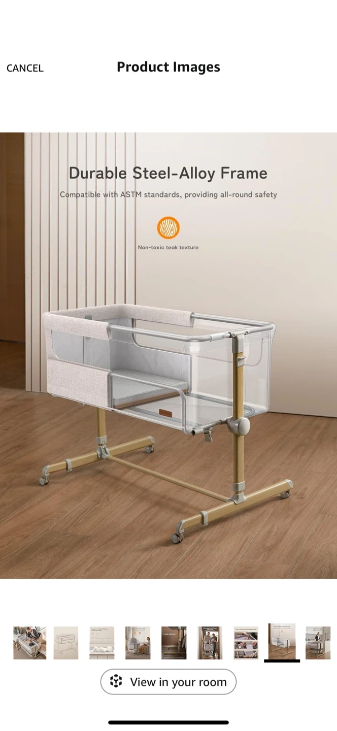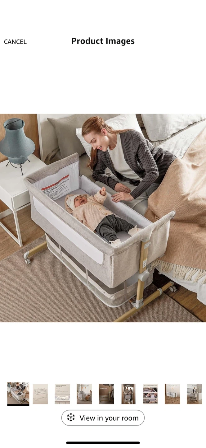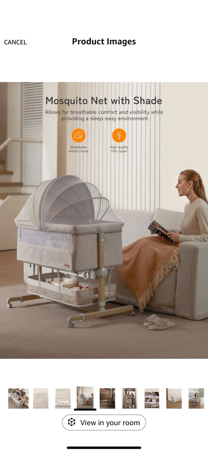 Selling a besrey Bedside Bassinet Sleeper for infants. This bassinet has 9 height positions and adjustable bedside crib with 360° swivel wheels, plus a storage basket. It also comes with a mosquito net with shade for comfort and visibility while providing a sleep-easy environment