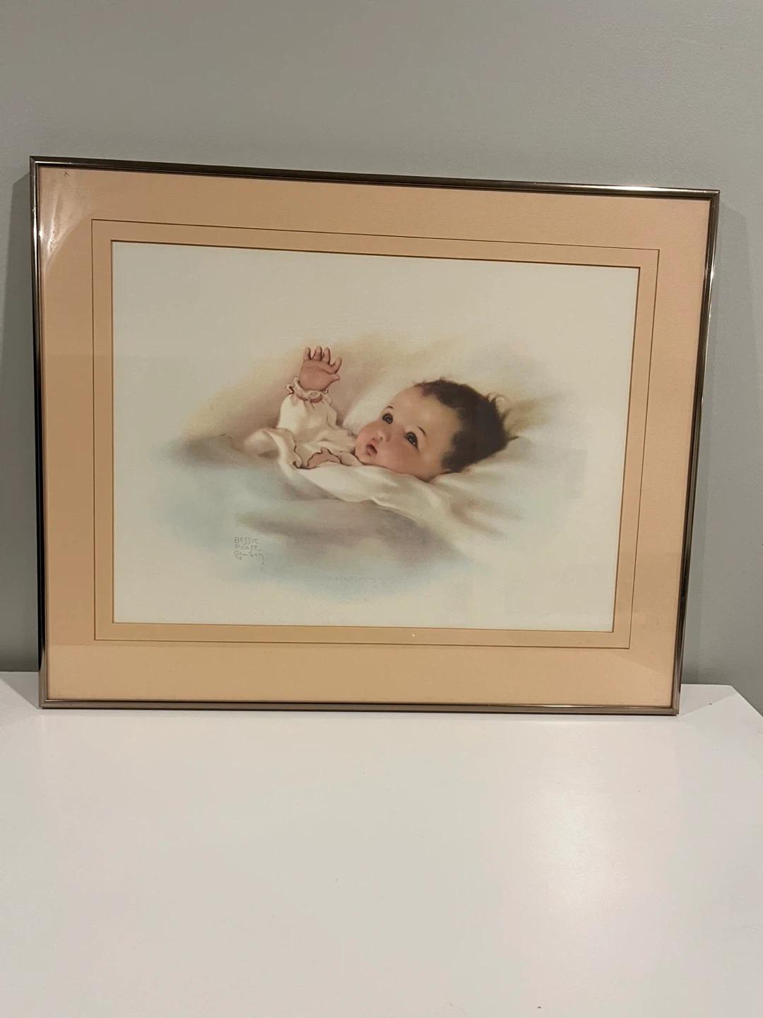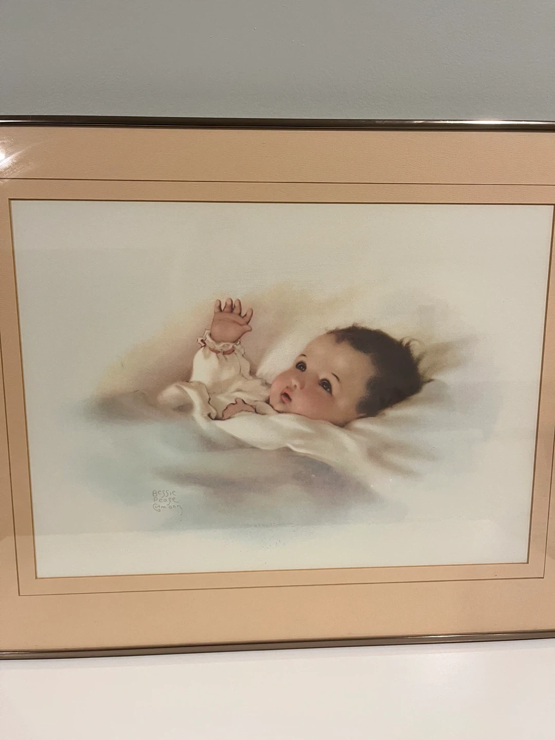 Selling a framed print by Bessie Pease Gutmann. It's a lovely piece of art featuring a baby. Great for a gift , nursery or just a wonderful piece of art to brighten your day