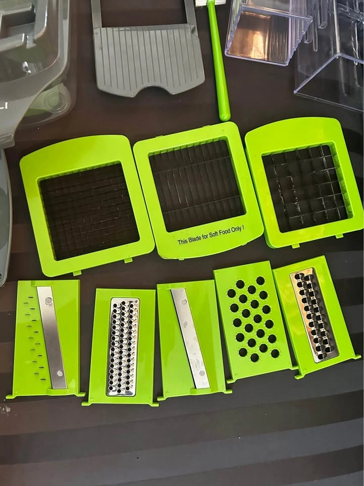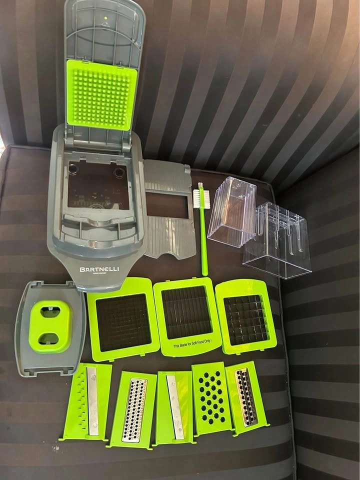 Bartnelli 8-Blade Vegetable Chopper/Slicer – Like New! Please send me your best offer 🥕 Chop, Slice, Grate & Julienne in Seconds! Why spend extra time prepping when this Bartnelli Home Comfort chopper does it all? Perfect for onions, carrots, cucumbers, potatoes, cheese & more! Includes: 🔪 8 Interchangeable Blades: • Large Dicer • Small Dicer • Garnish Slicer • Slicer • Fine Slicer • Julienne Cutter • Fine Julienne Cutter • Grater 💡 BPA-Free, food-safe, easy-to-clean, with container & cleaning brush included! 📦 Condition: Excellent – barely used, all parts included.