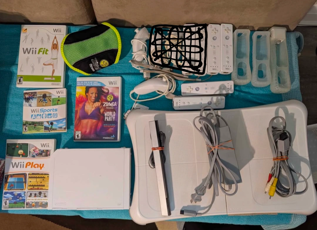 $180 or Best Offer Includes: Wii console 4 Games and a fitness belt 1 Balance Board 6 remotes and 3 silicone cases 1 motion sensor bar Everything still works perfectly!!! Pickup only!