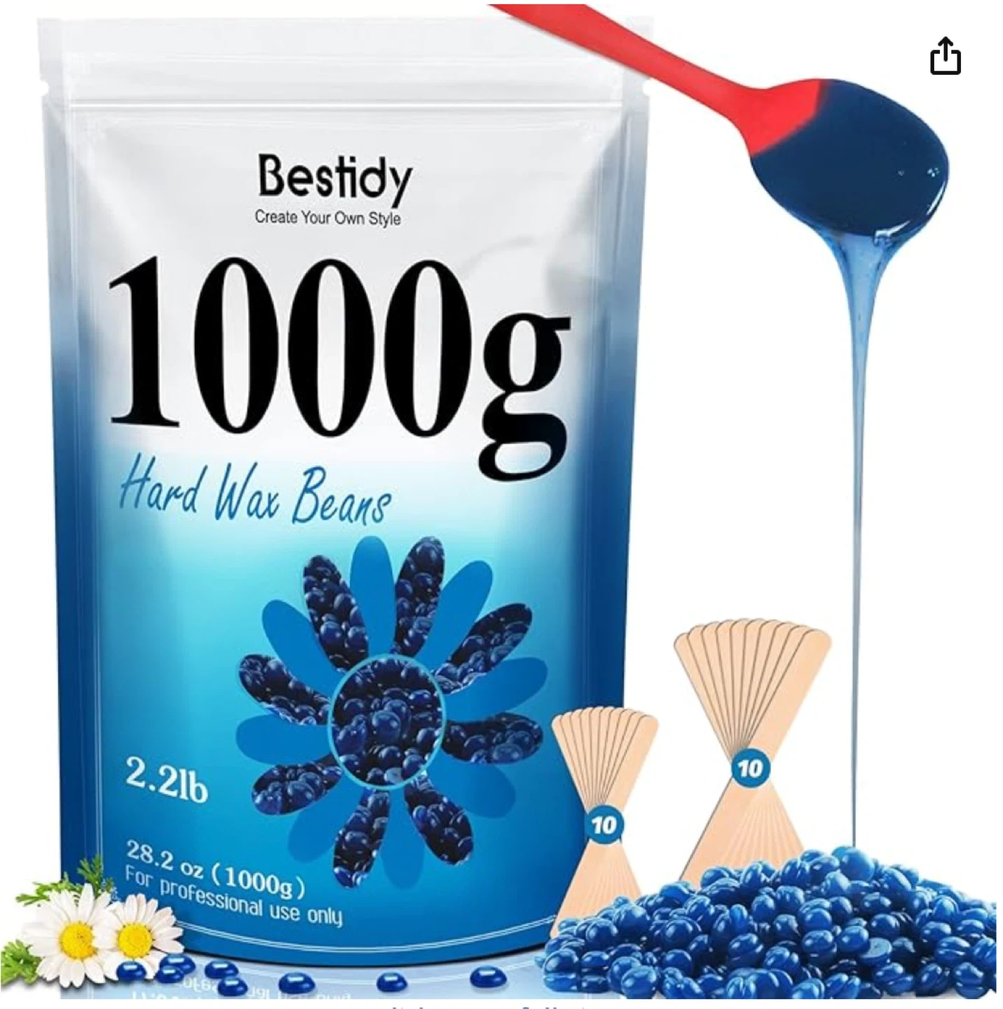 68Selling a bag of Bestidy hard wax beans! The bag contains 1000g (2.2lb) of wax beans, perfect for professional or at-home use. Also comes with applicator sticks