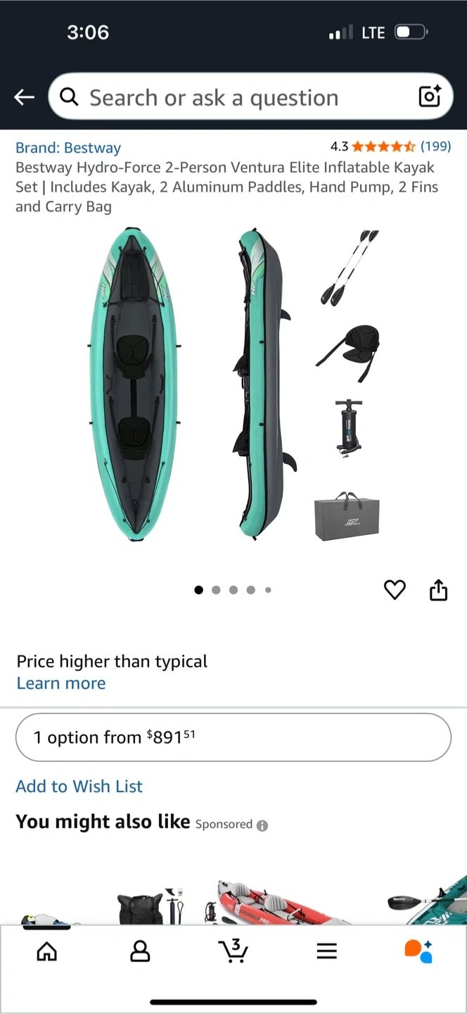 0Selling a Bestway Hydro-Force Ventura Elite X2 Inflatable Kayak Set! This set includes the kayak, 2 aluminum paddles, a hand pump, 2 fins, and a carry bag, so you're ready to hit the water. Originally priced at $891.51.