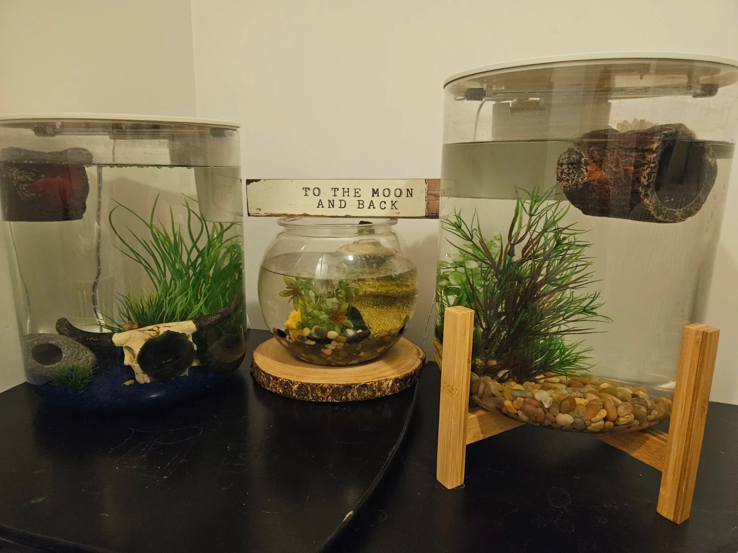 5Selling 3 Betta fish with fish tanks and decorations. They were abandoned by my former tenant. They need a caring home ASAP