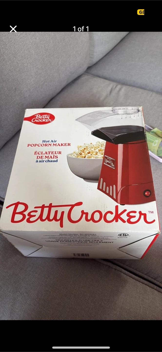 10Selling a Betty Crocker hot air popcorn maker. It's in great condition and comes in the original box! Perfect for movie nights or a quick snack