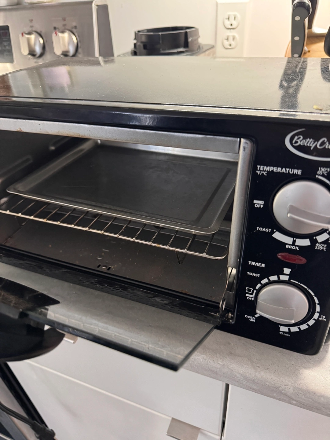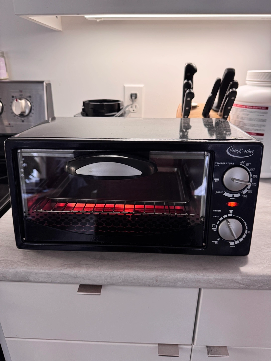 68Small countertop toaster oven. Features toast, bake, and broil functions. Includes baking pan and rack. Great condition, hardly used.