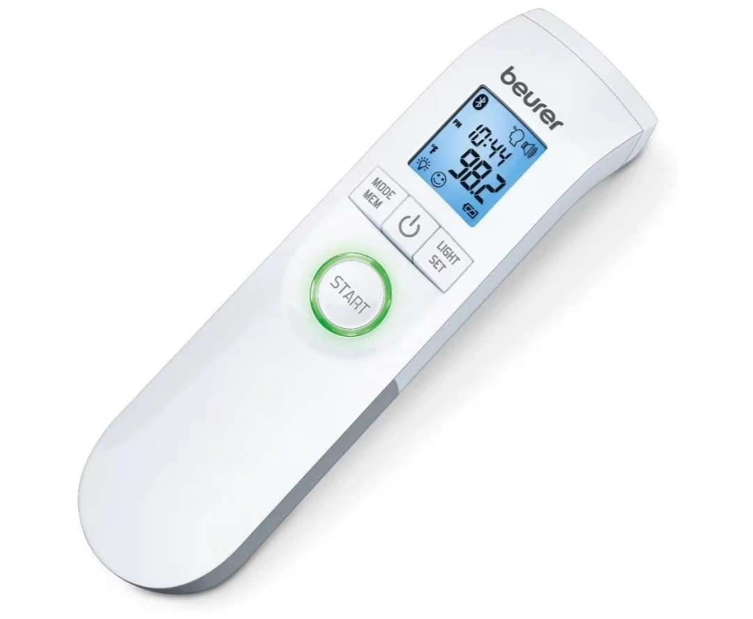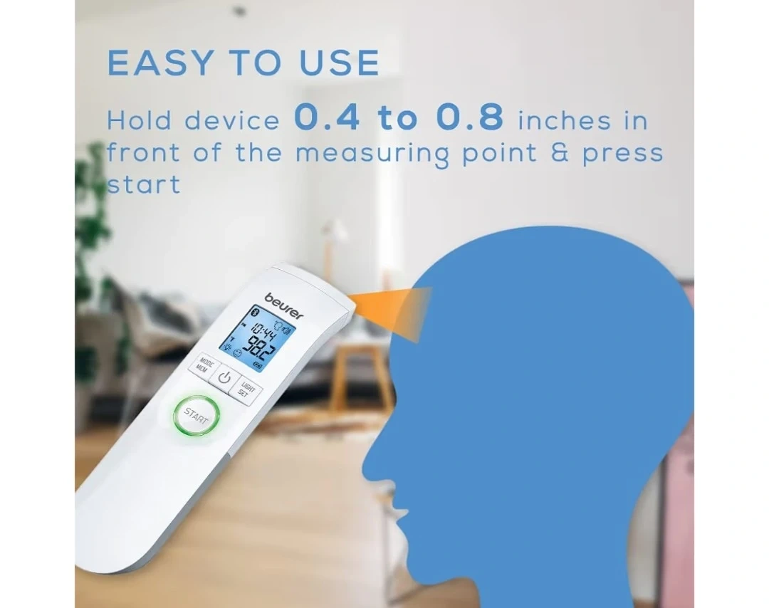26Brand new in Box It works with the free 'Beurer HealthCoach' app and can measure the temperature of a forehead, object, or room. It also has an integrated LED fever alarm indicator (Green/Yellow/Red) and 60 memory spaces to help monitor changes in temperature. Easy to use, just hold the device 0.4 to 0.8 inches in front of the measuring point and press start.