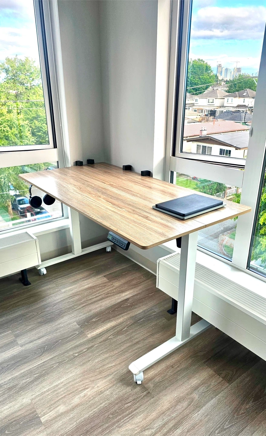 10Selling a BEXEVUE standing desk in great condition! It's an electric height adjustable desk with a splice board. The dimensions are 55 x 28 inches, perfect for a home office setup. It also has castors for easy moving around your space