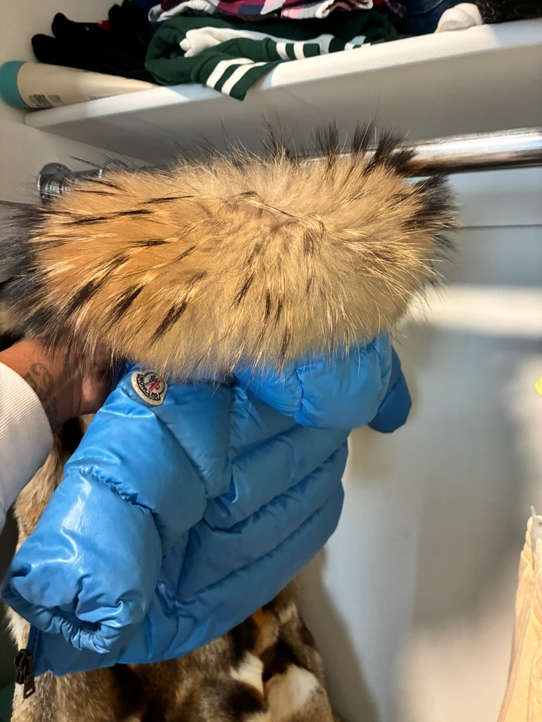 Moncler Blue Down Puffer Jacket with Fur Hood