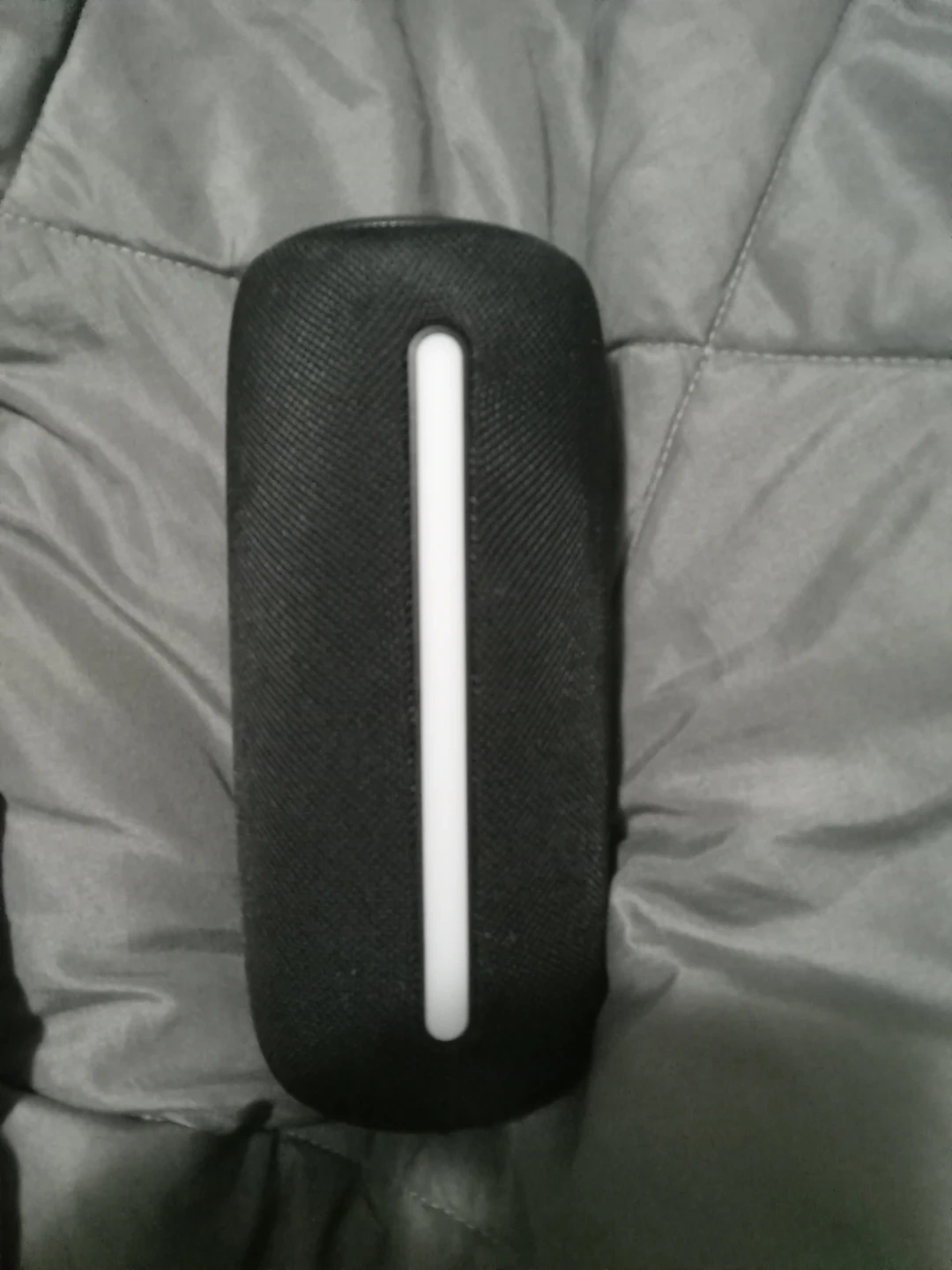 This is an Oraolo speaker. It's black with a USB-C charging port. The speaker has volume controls and a power button. Great for events or parties or just listening to music. The volume can go pretty loud if u put it up and has a good bass. It's also new and has rainbow led lights that u can change the color of