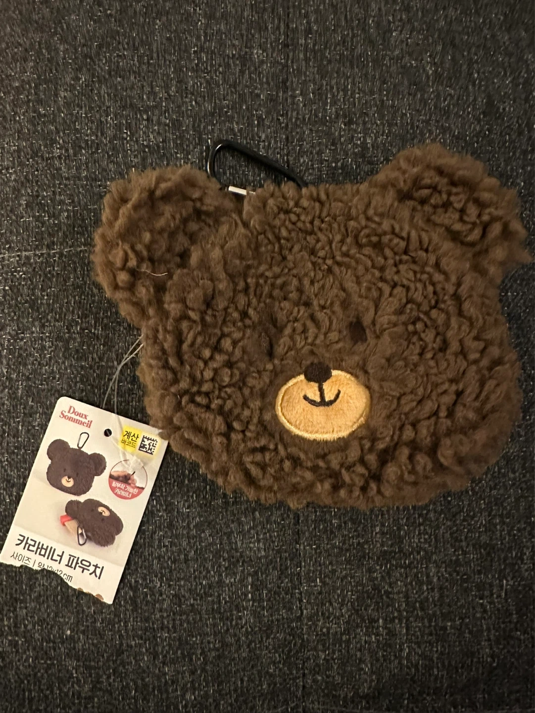 This cute teddy bear carabiner pouch is made by Doux Sommeil. It's approximately 10-12cm in size. Perfect for keeping small essentials handy!