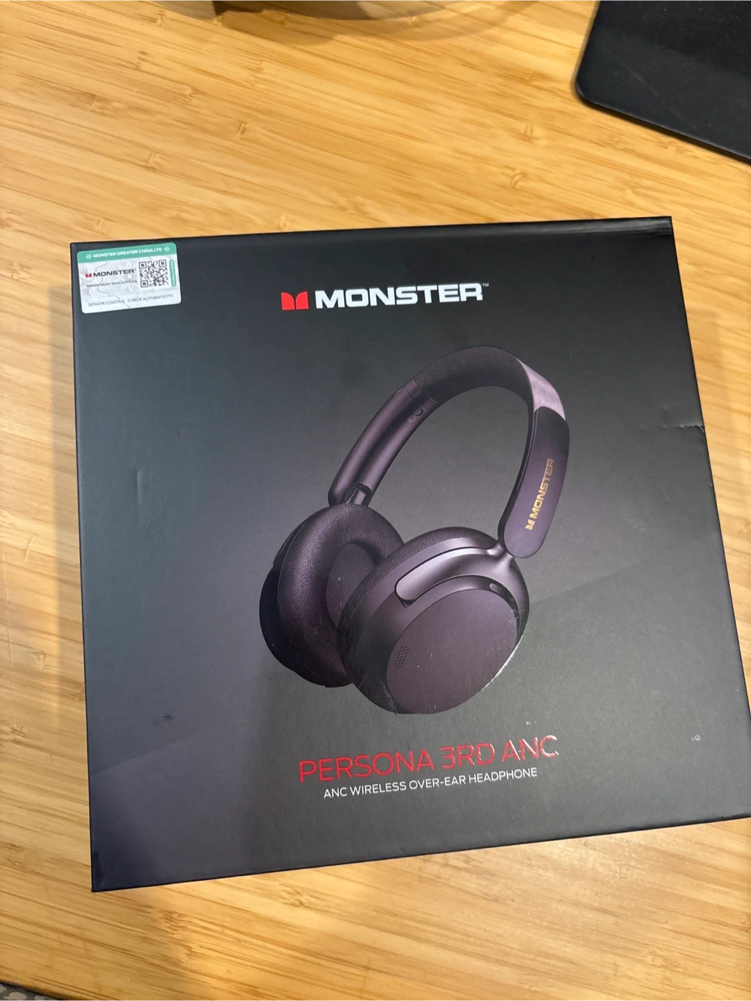 These Monster Persona 3rd ANC headphones offer wireless over-ear listening. They come with Active Noise Cancellation. The headphones are in a black colour and include their original packaging.