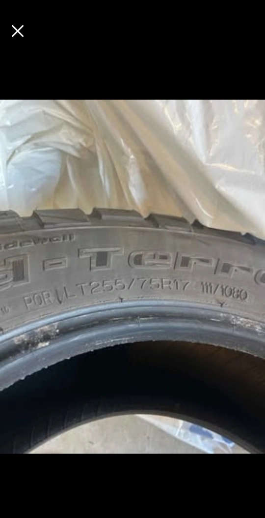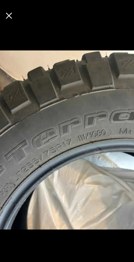 5 - BF Goodrich Mud Terrain Tires LT255/75R17 They came off of a Jeep Wrangler. However, they will fit almost any 17" SUV rims. Great condition, 80% of life left. Beef up your ride for the summer. Pick up in either Milton or Oakville.