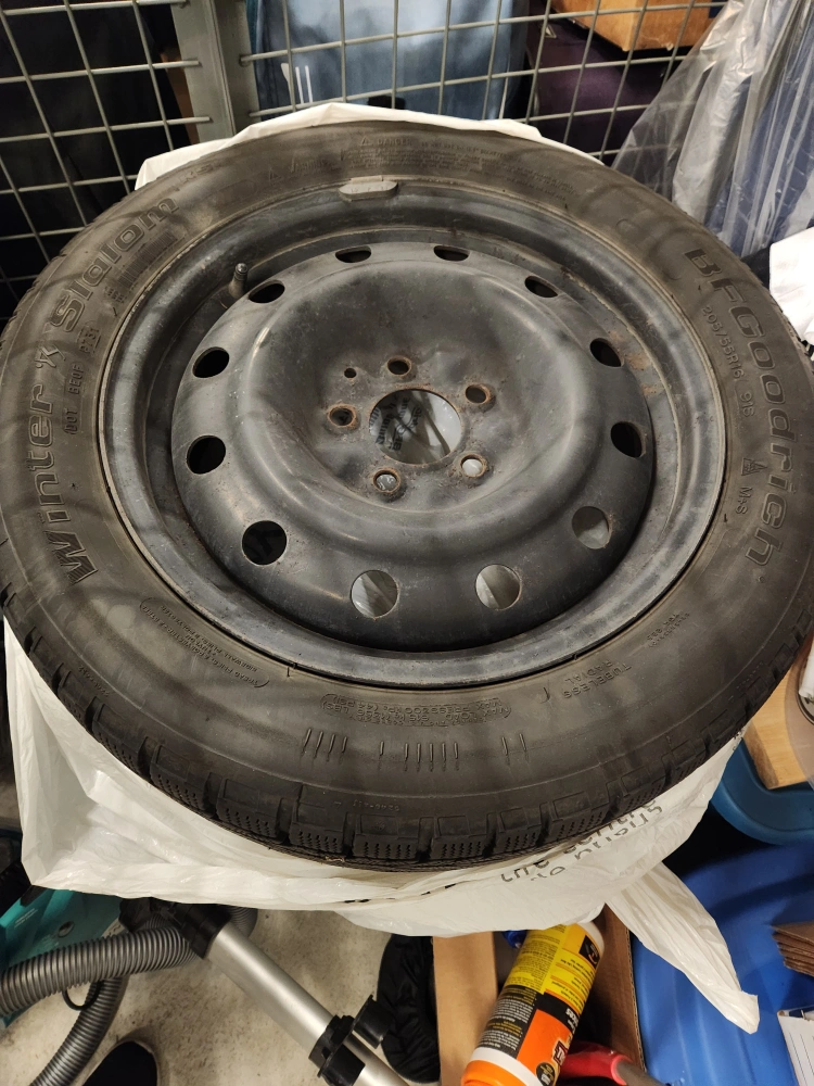 25Set of four used BFGoodrich Winter tires mounted on steel rims. Size 205/55R16. Good tread depth. Sold as is. Used on Honda Civic
