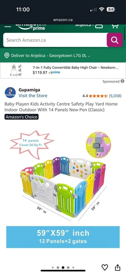 Kids activity centre safety play yard for home indoor or outdoor use. Features 14 panels. Like new condition from a smoke-free, pet-free home.