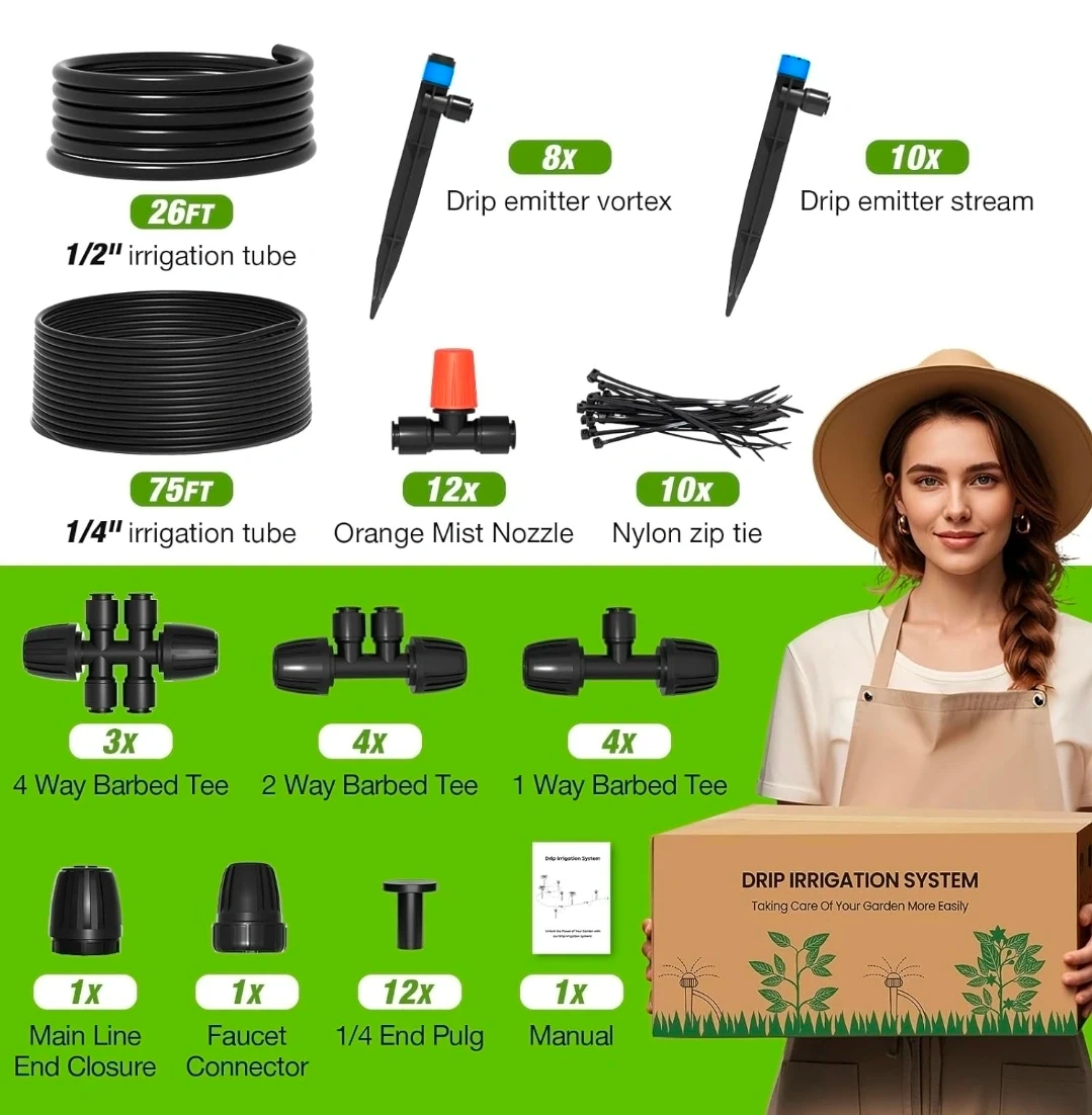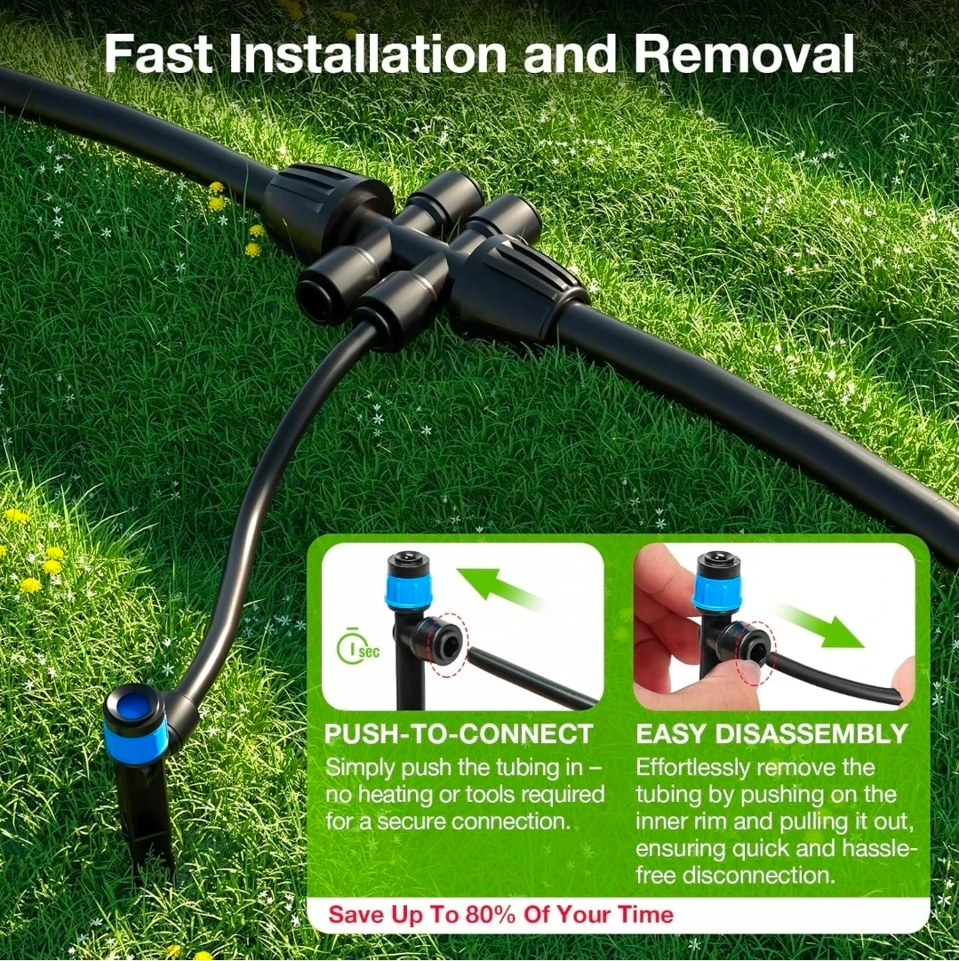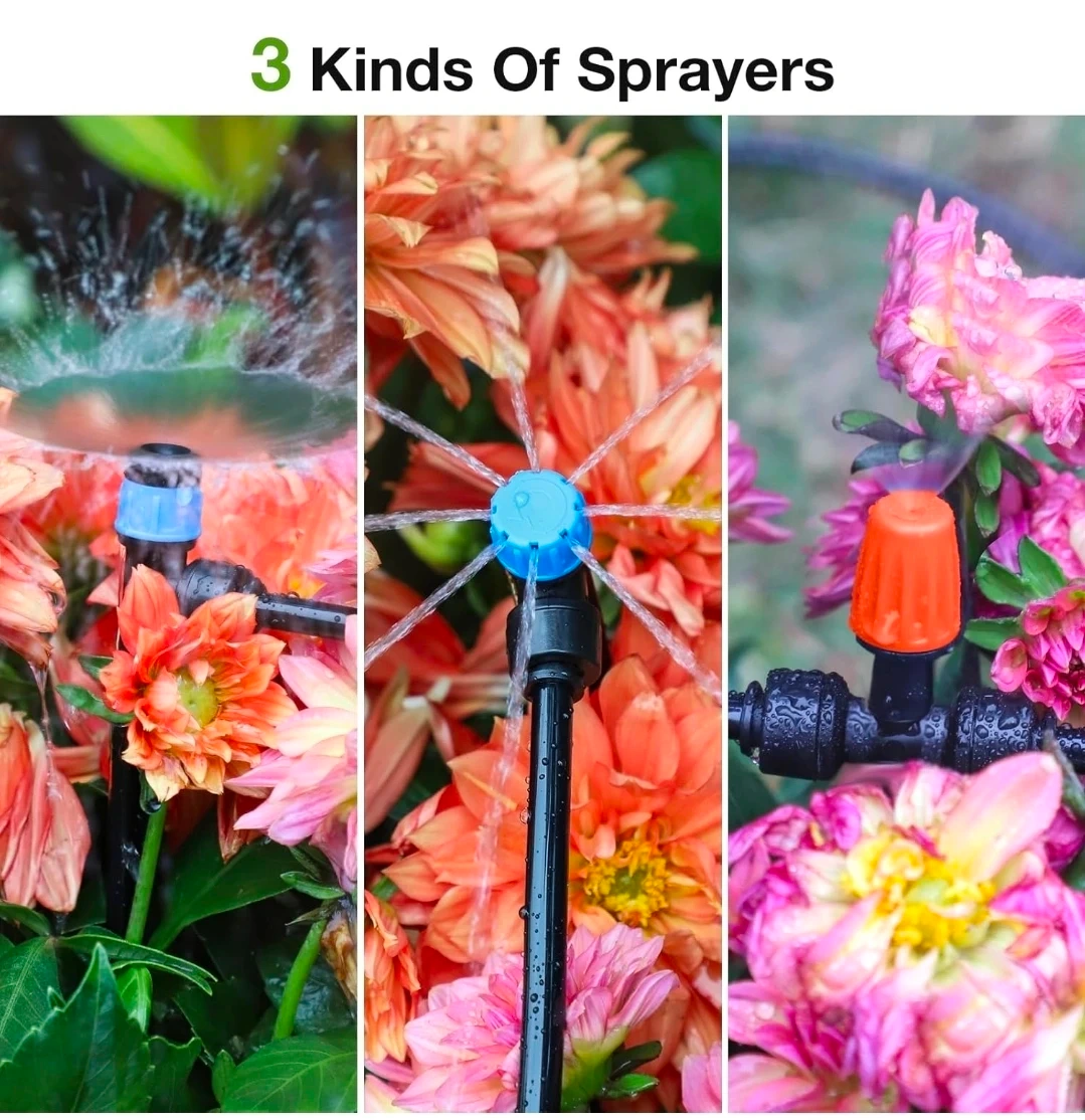This automatic drip irrigation system from MIXC is great for watering gardens. It features a fast push-to-connect system for easy assembly. This kit includes multiple sprayer types and ways to split the lines.