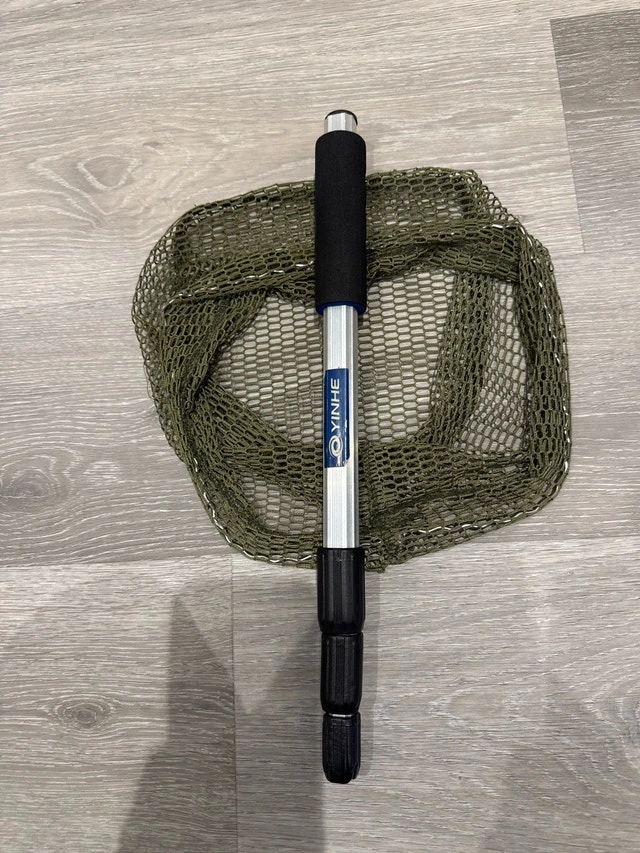 This YINHE fishing net is used but ready for your next adventure. It features a telescopic handle for easy storage, durable netting material, and is lightweight and easy to carry. Condition: Used - Good. Cash accepted.