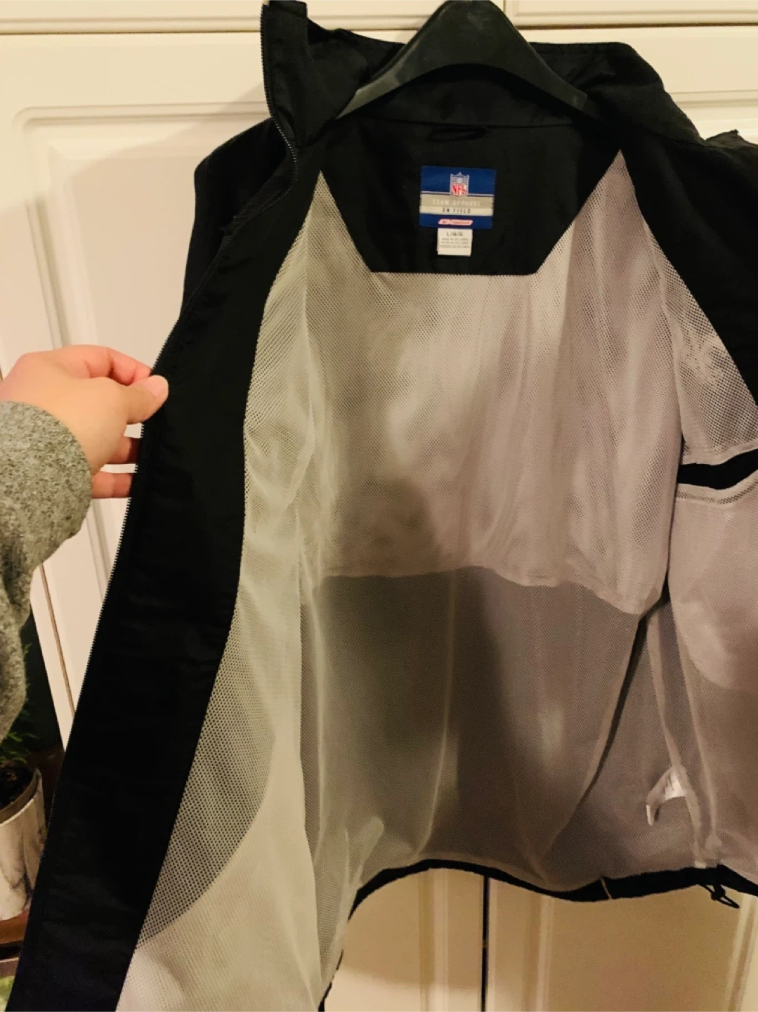 Men Windbreaker NFL New Orleans Saints Jacket size large. Almost like new condition. Zipper and Velcro. Selling for $35 CAD FIRM. Smoke Free Home.