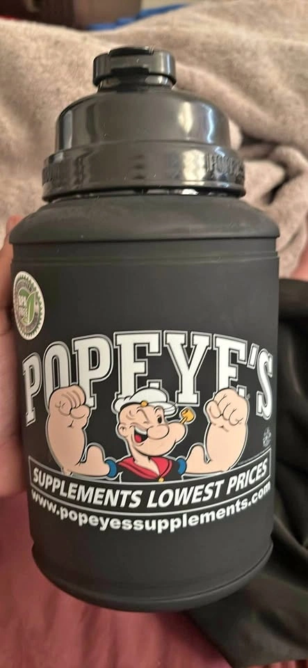 Popeye's Supplements Hydration Jug Water Bottle with Time Marker