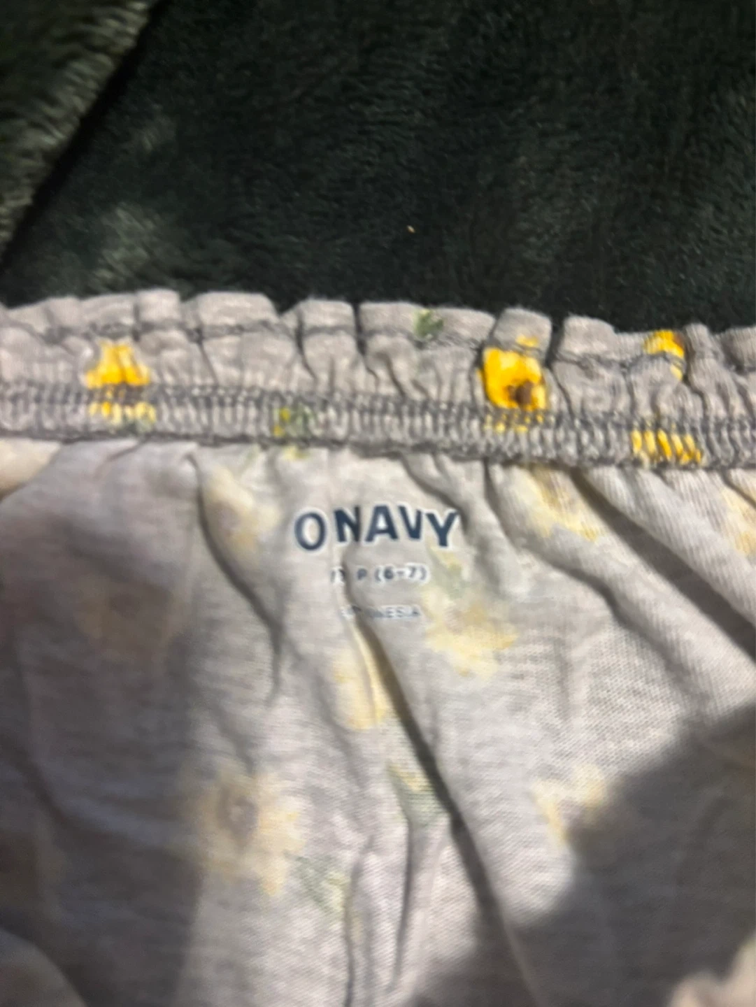 This Old Navy girls' romper features a cheerful grey and yellow sunflower print. It's a size 6-7 with a comfortable, elasticized neckline and waist. Great for playtime or casual outings!