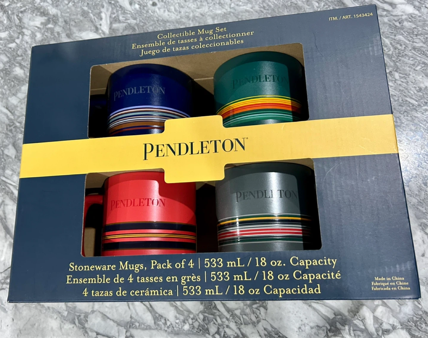 Includes 4 large mugs (533 mL / 18 oz) with the classic Pendleton stripe designs. Super nice quality and perfect for coffee, tea, or hot chocolate β