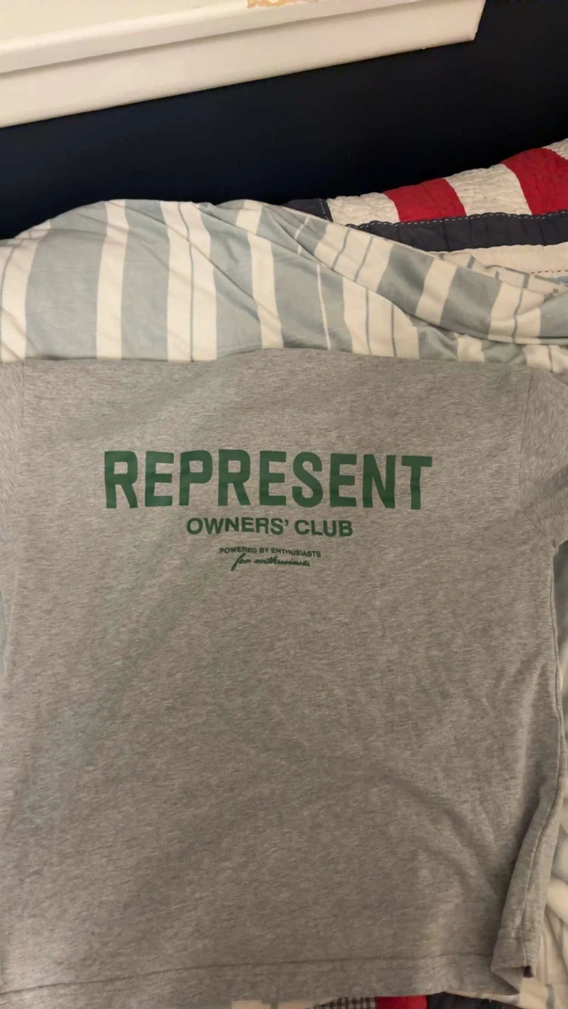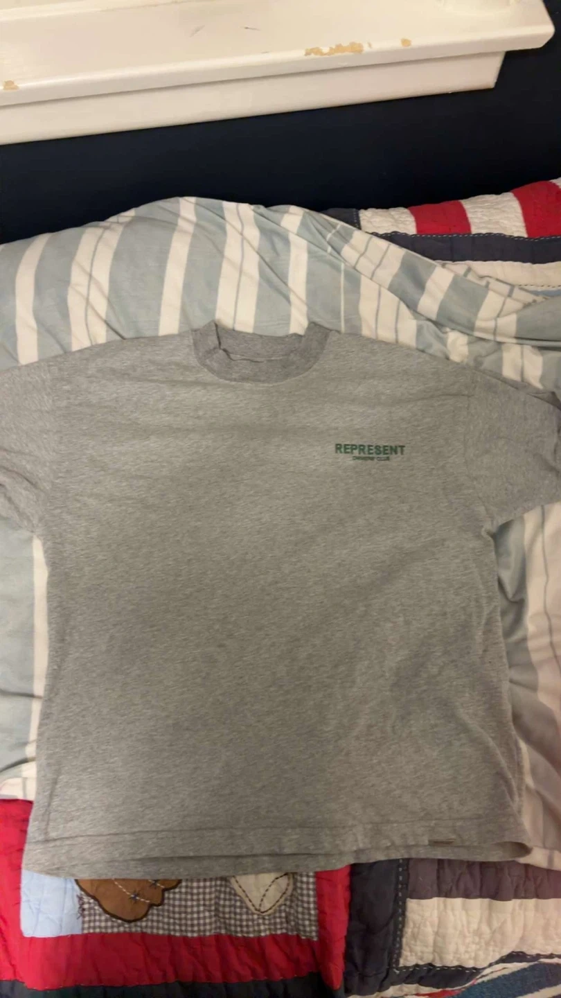 Represent Owners Club grey t-shirt, clean condition and lightly worn. High-quality material with a comfortable fit, perfect for everyday wear and streetwear outfits.