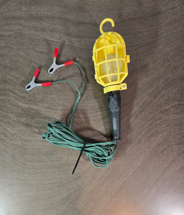 Good condition. May need to replace bulb. 15ft cord and max 75w bulb. Perfect for those hard to see places. It comes with alligator clips for easy connection. Great for working on cars or in the garage. Cross-posted.