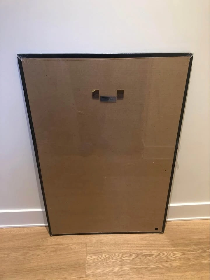 27” x 41” In a protective plastic Film on a cardboard backing, light frame.