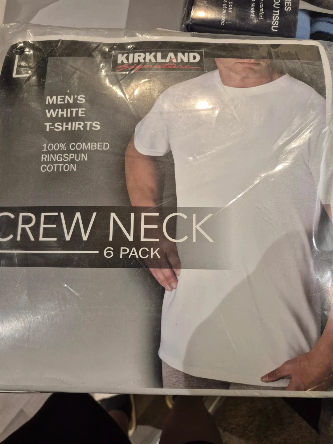 Selling a brand new, unopened 6-pack of Kirkland men's white crew neck t-shirts in size large. They are made of 100% combed ringspun cotton.