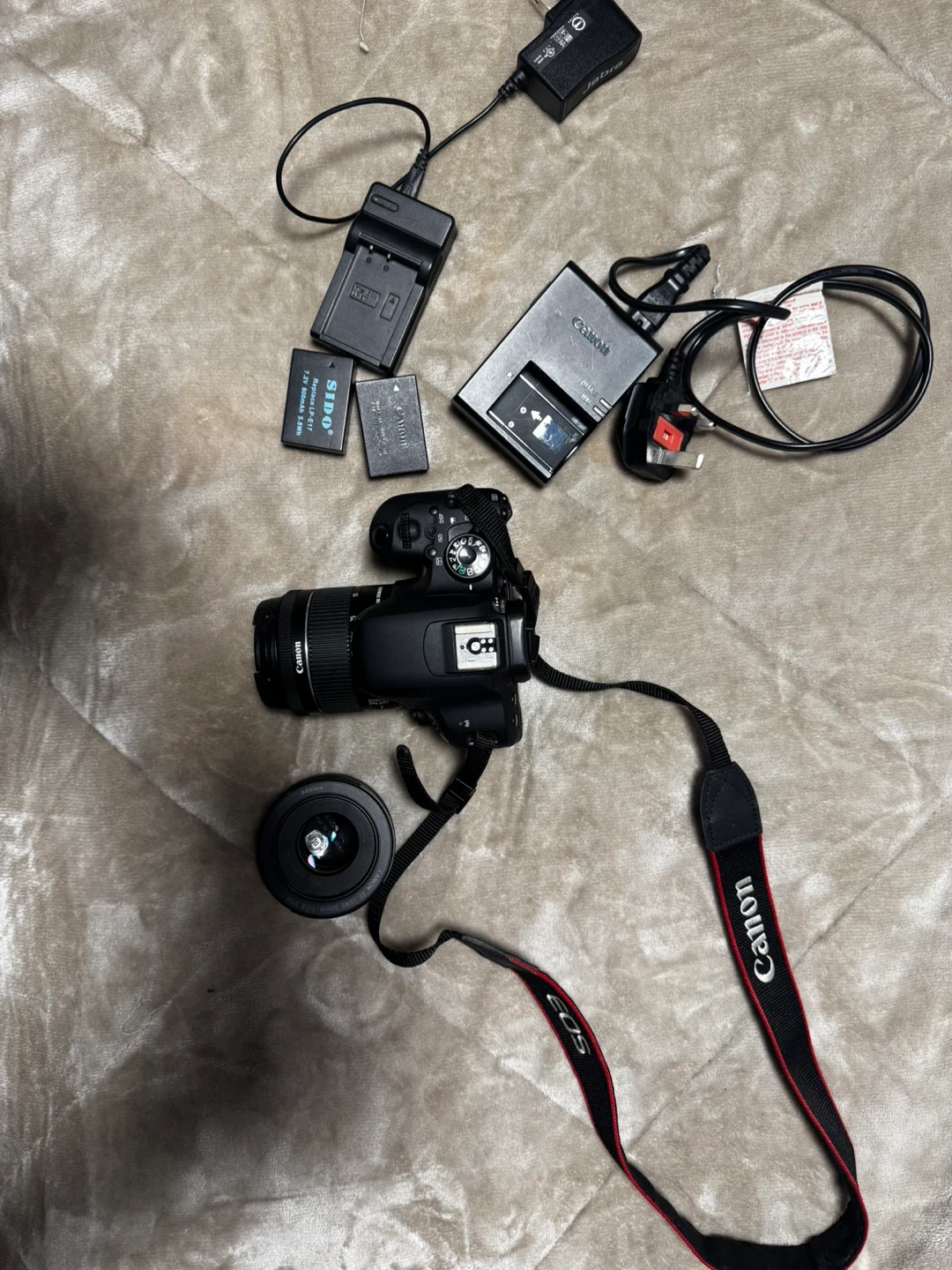 Canon EOS 800D DSLR camera with a Canon EF 50mm f/1.8 STM lens. Includes 2 chargers and 2 batteries. Great for aspiring photographers!