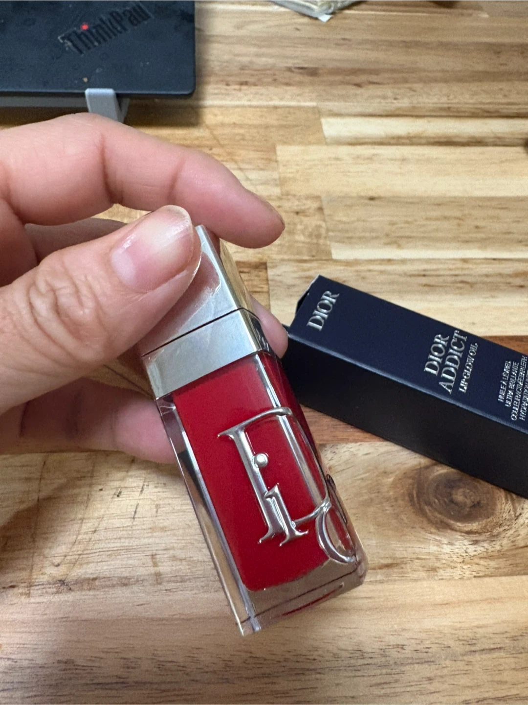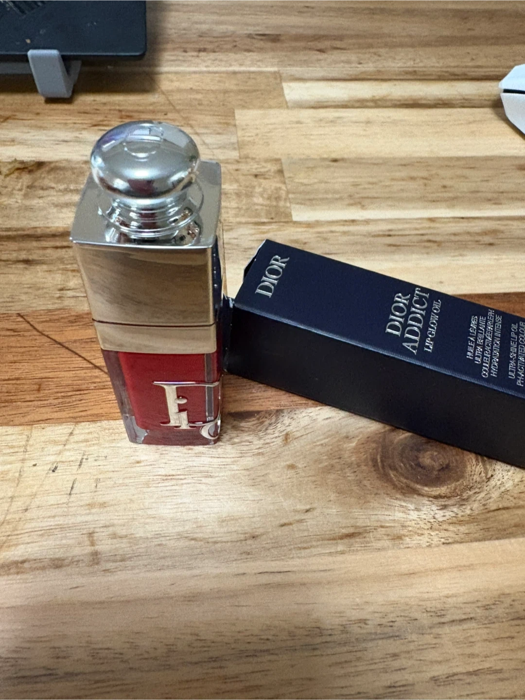 This is the Dior Addict Lip Glow Oil in the shade 031 Strawberry Glaze. It's a colour reviver lip oil that provides shine and hydration. The formula contains cherry oil for intense lip care.