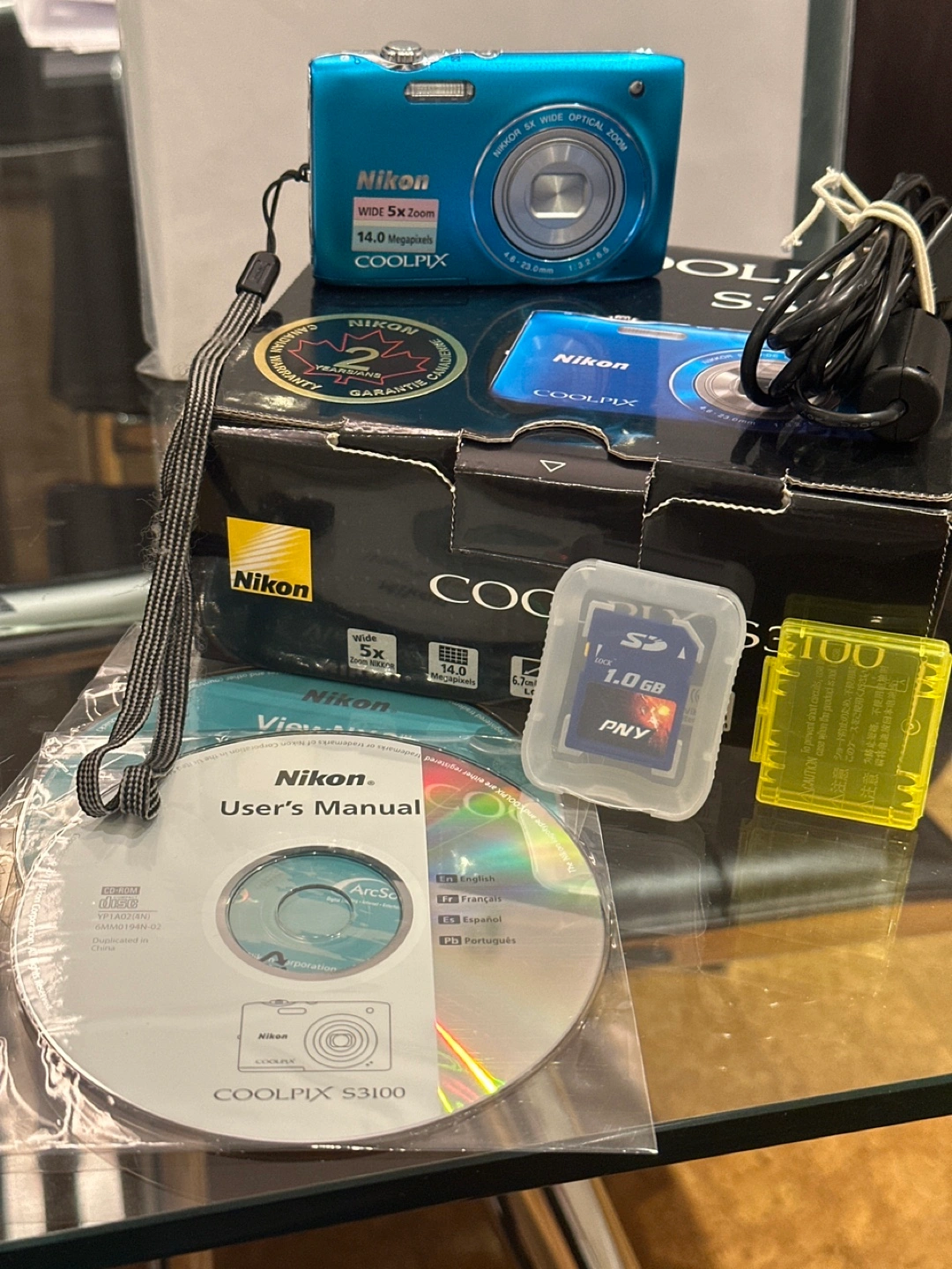 Compact digital camera. Includes box, manual, CD, and memory card. 14.0 Megapixels, 5x zoom.