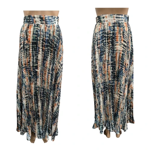 Elevate your modest wardrobe with this stunning Veiled Collection Gianna Printed Maxi Skirt. Featuring a vibrant abstract print in shades of blue, orange, cream, and teal, this skirt offers a sophisticated yet bold aesthetic.