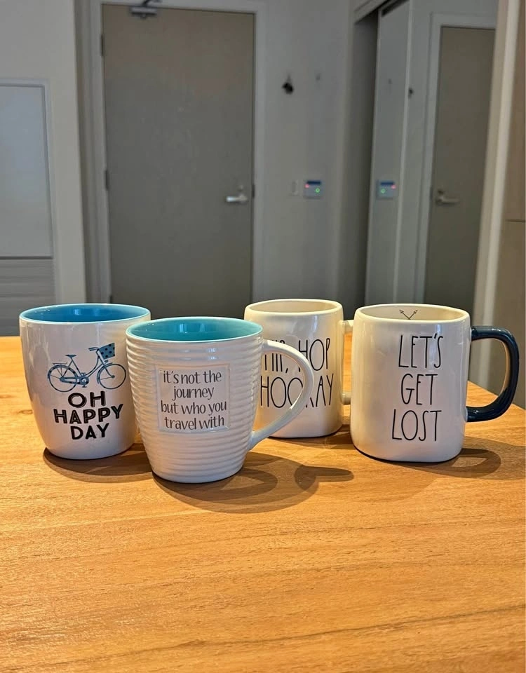 $5 each or $15 for 4. Each cup holds about 650 ml.