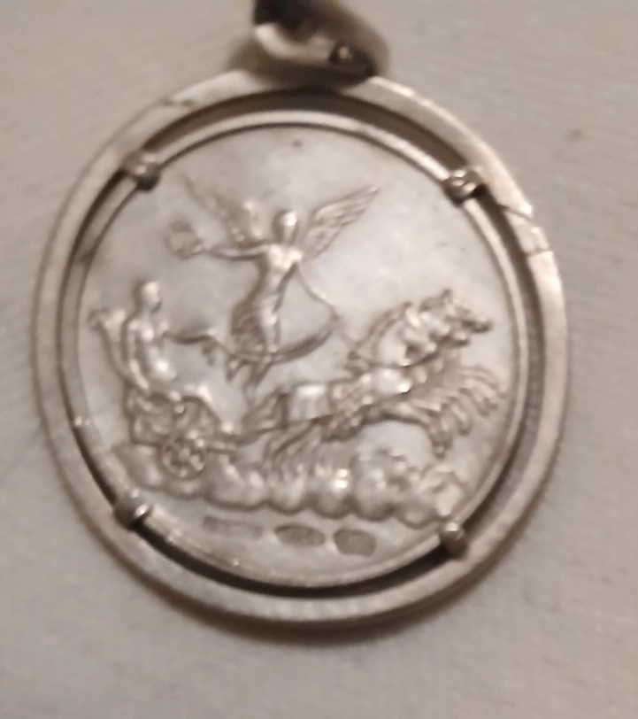 Vintage sterling silver coin pendant featuring a scene of Apollo driving a chariot, designed by the Italian medalist Pietro Giampaoli.