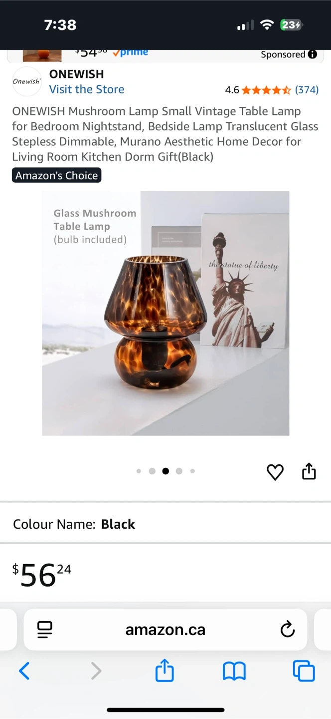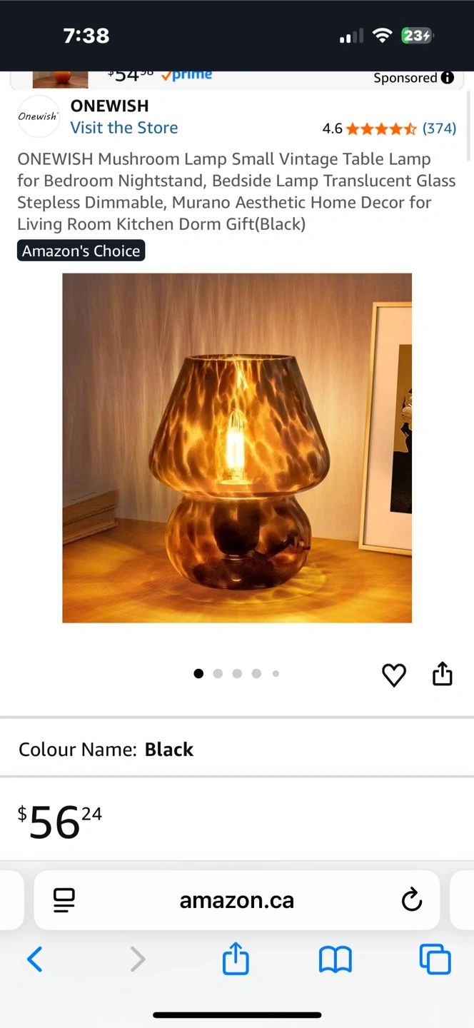 This is a cute mushroom-shaped table lamp from ONEWISH. It features a stepless dimmable translucent glass design. Perfect for a bedside table or dorm room decor!