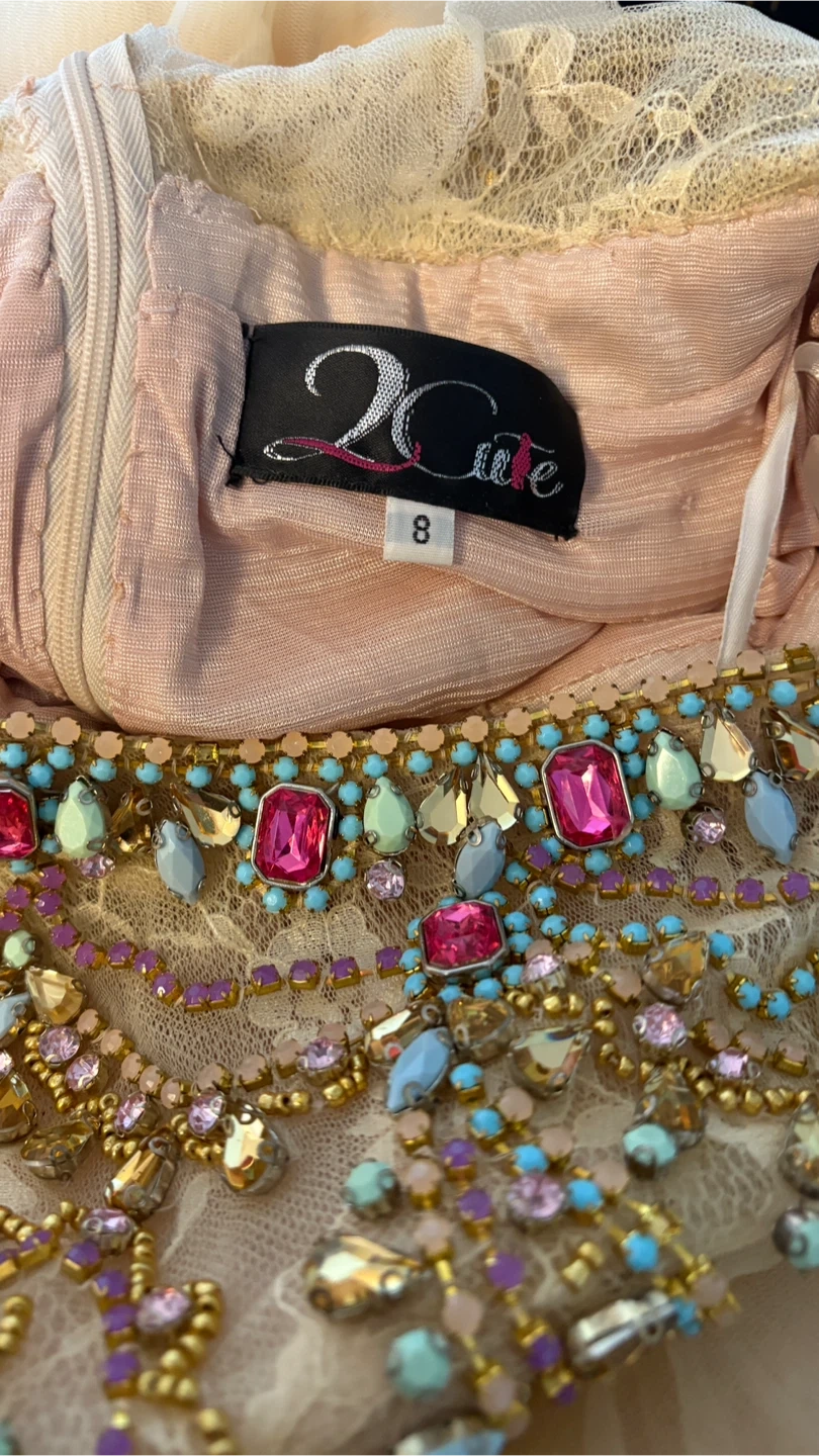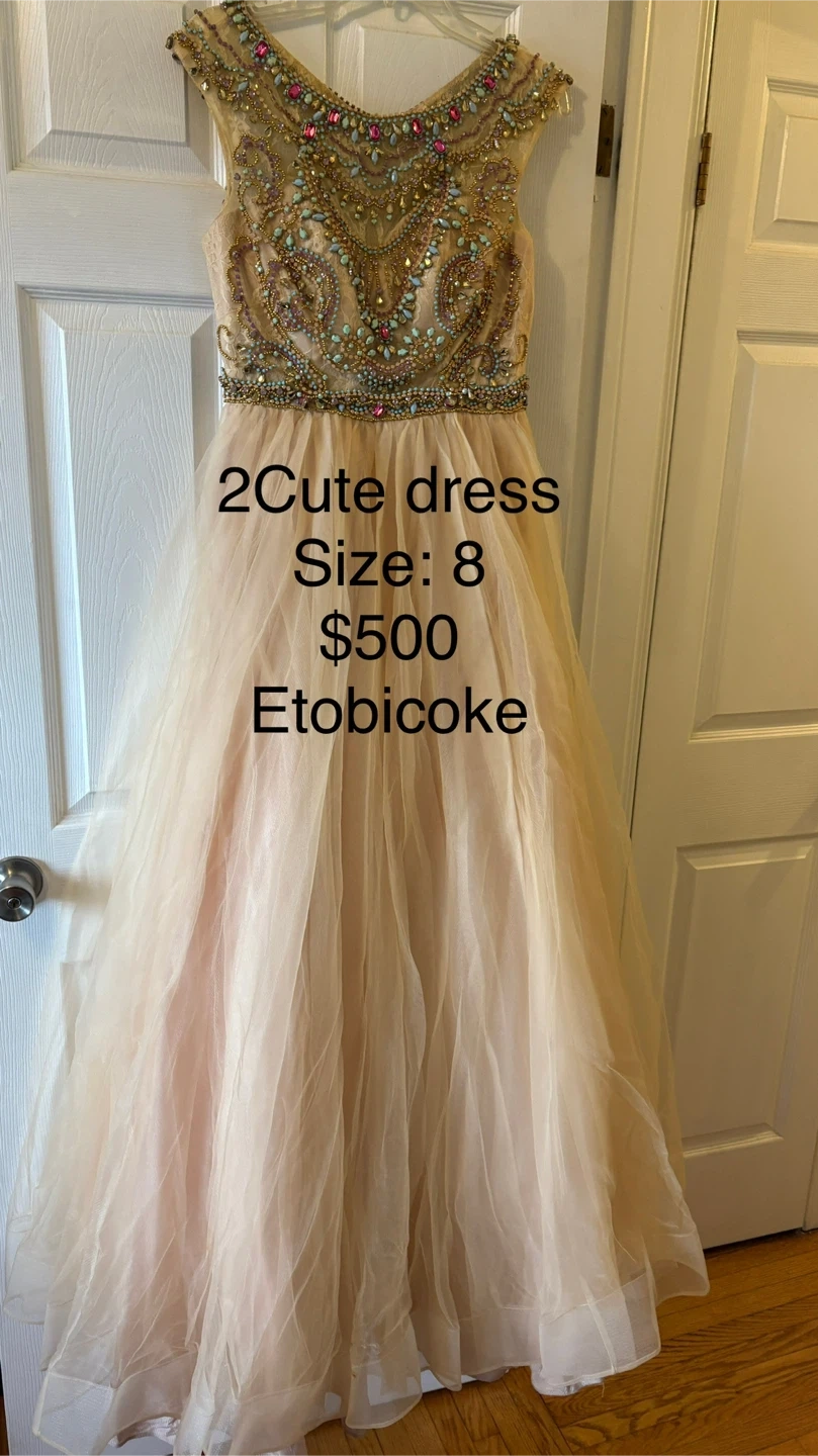 Selling a beautiful formal dress from 2Cute. It's a size 8 and features intricate embellishments. Perfect for a special occasion!