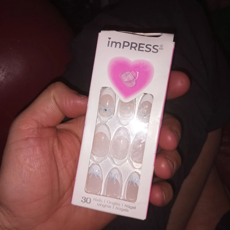 imPRESS press-on nails in a French tip design with subtle bow accents.