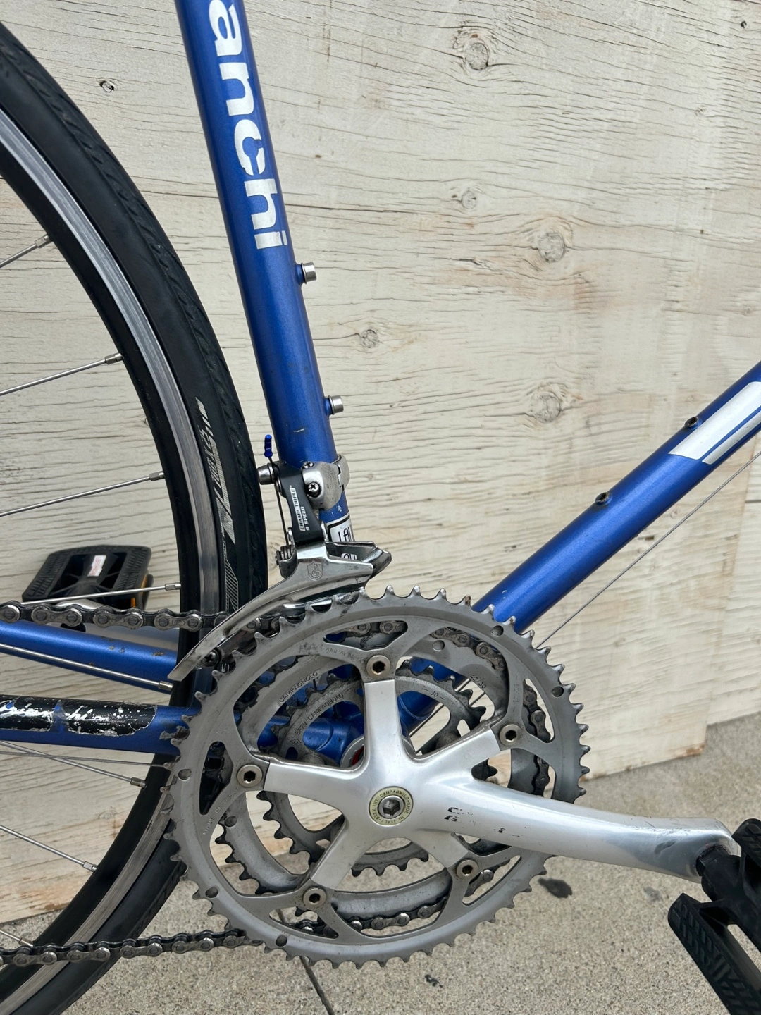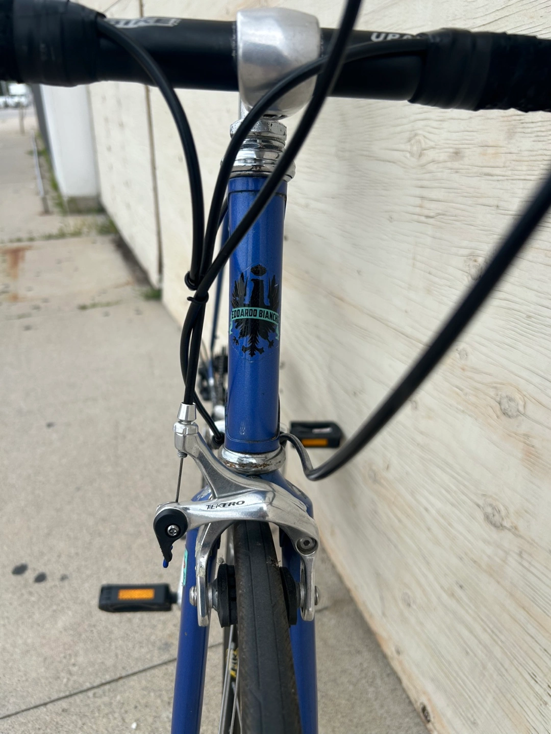 10Selling a Bianchi road bike in chromoly M/L frame lightweight. It’s a 3*9 drivetrain Campagnolo champ triple drivetrain Tektro brakes front and back Brand new integrated brake and shifter lever Clean road Bianchi bike Asking price or trade for gravel $300