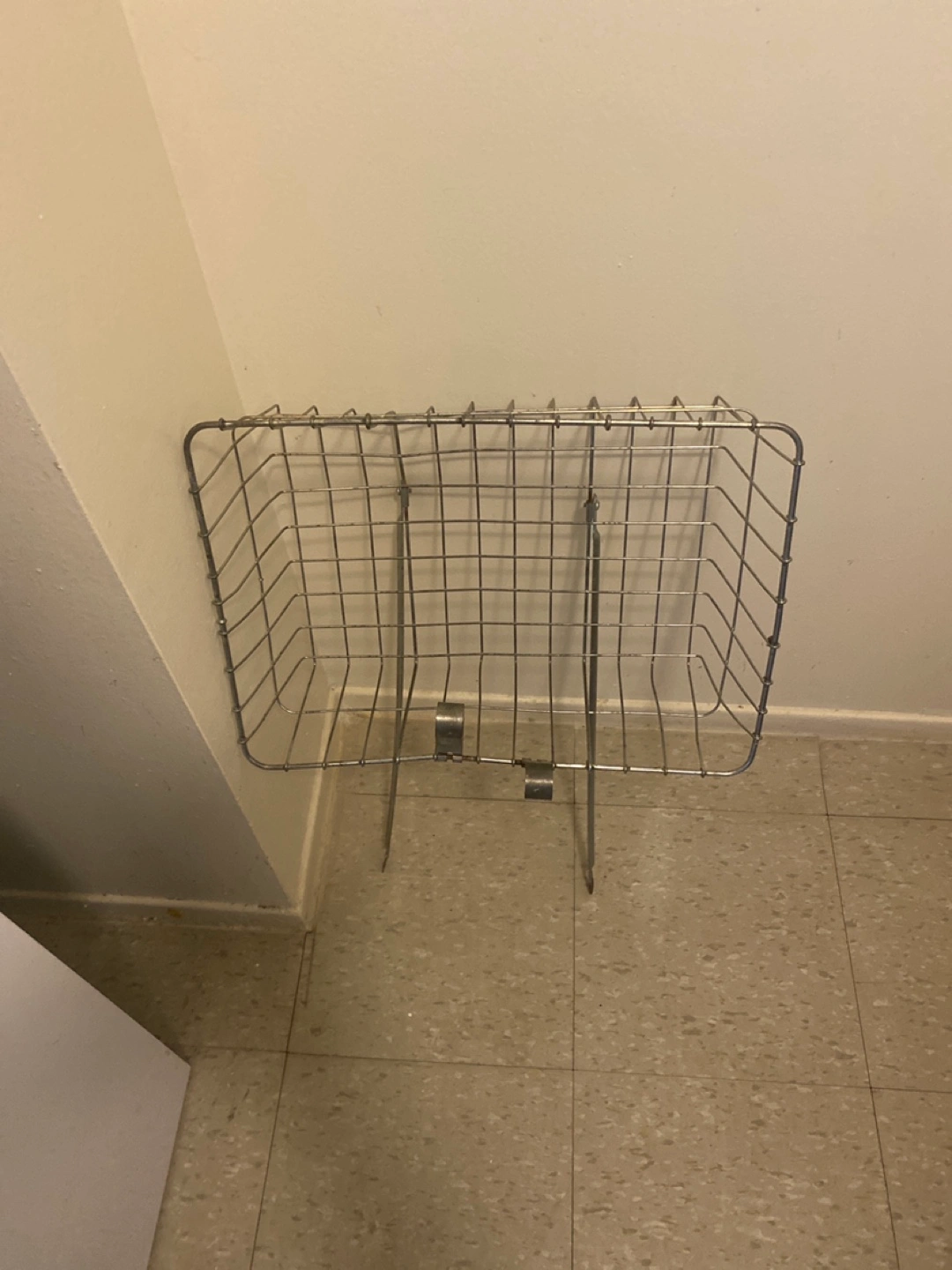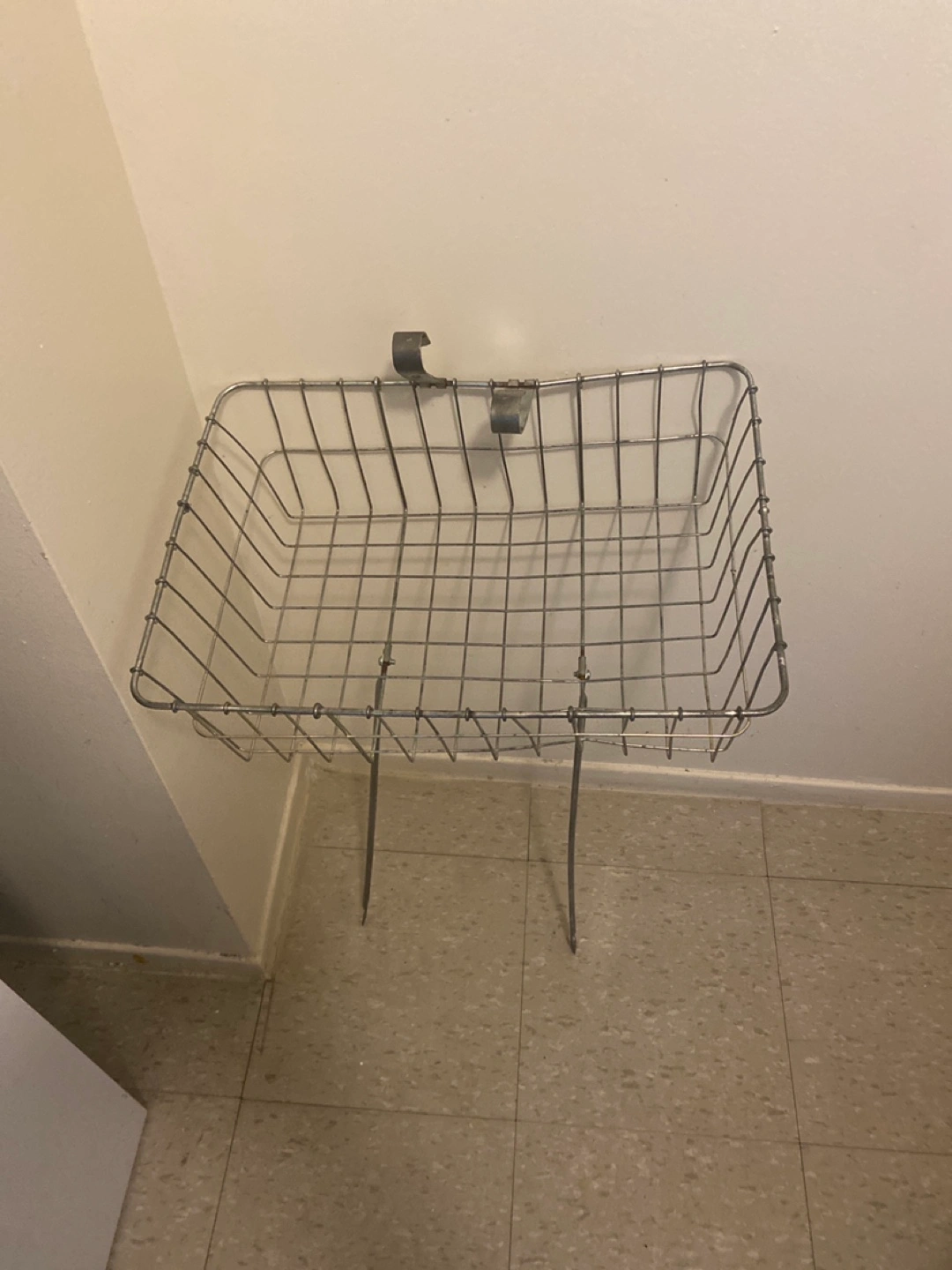 41Rectangular wire basket. The basket is attached to bicycle handle. Very good condition and easy to install.