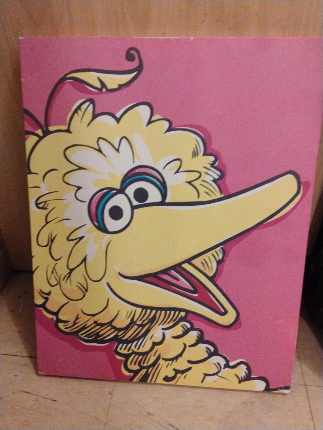 Vintage Sesame Street Big Bird canvas artwork. Shows some wear. Great for a child's room or collector.