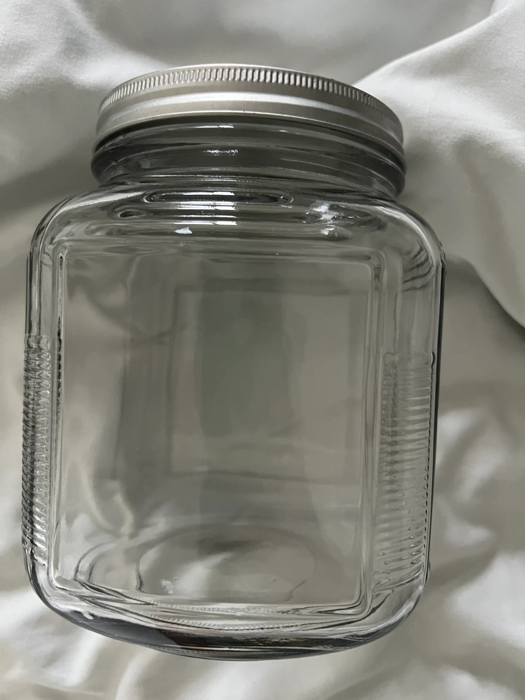 15Selling a clear glass jar with a vacuum-sealed lid. It's in great condition and perfect for storage or canning!