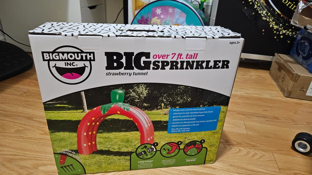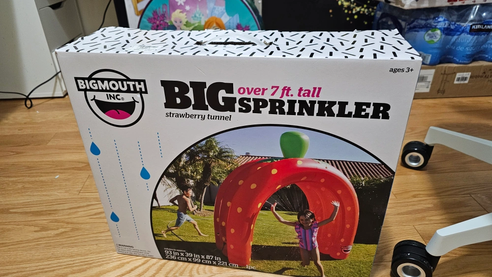 Kids sprinkler new in box, never used Over 7ft tall / strawberry tunnel Outdoor use Suitable for ages 3 and up Cash only Pickup only